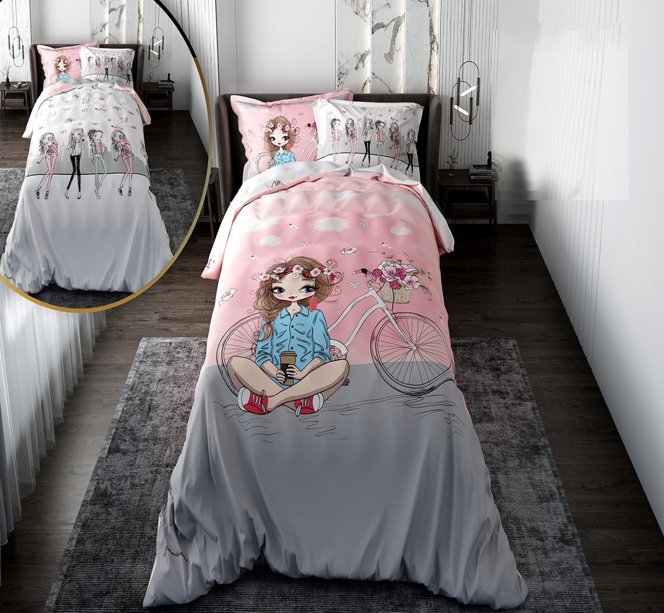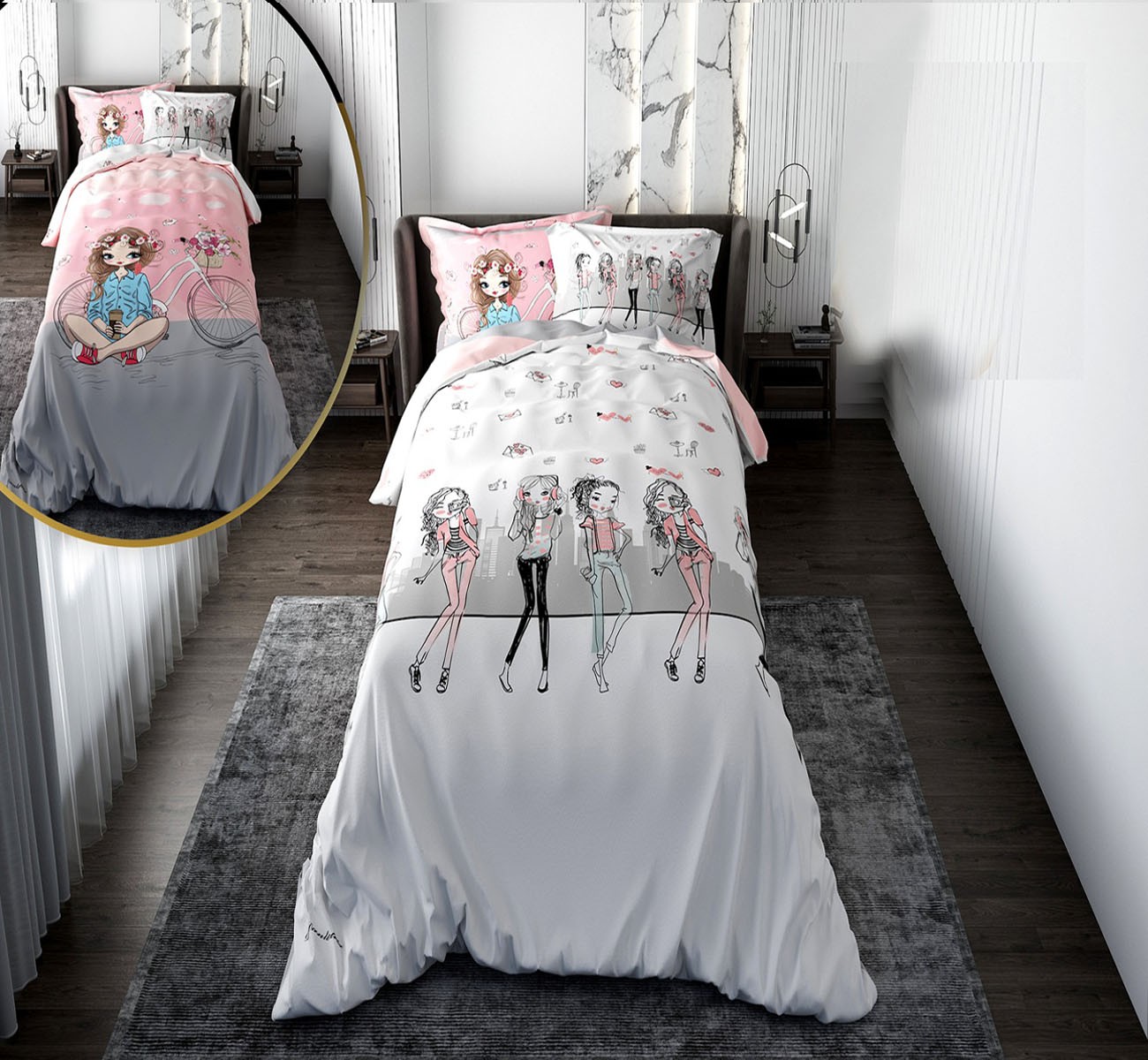 روتختی کودک دخترانه با لحاف دو رویه طرح Happy Girls