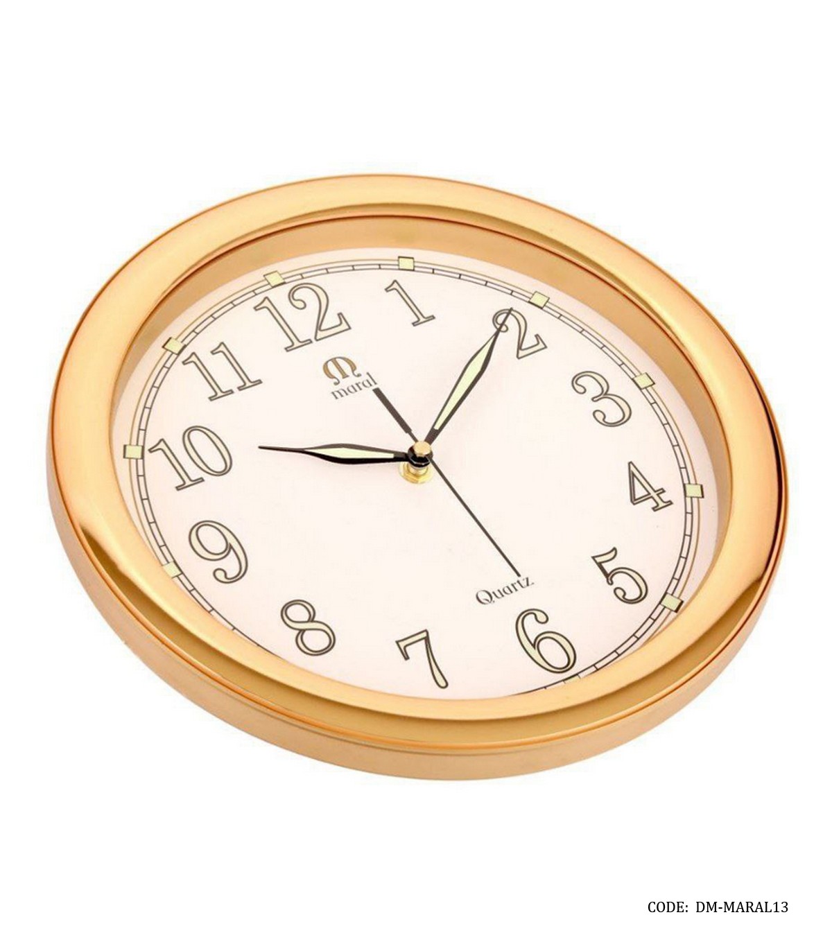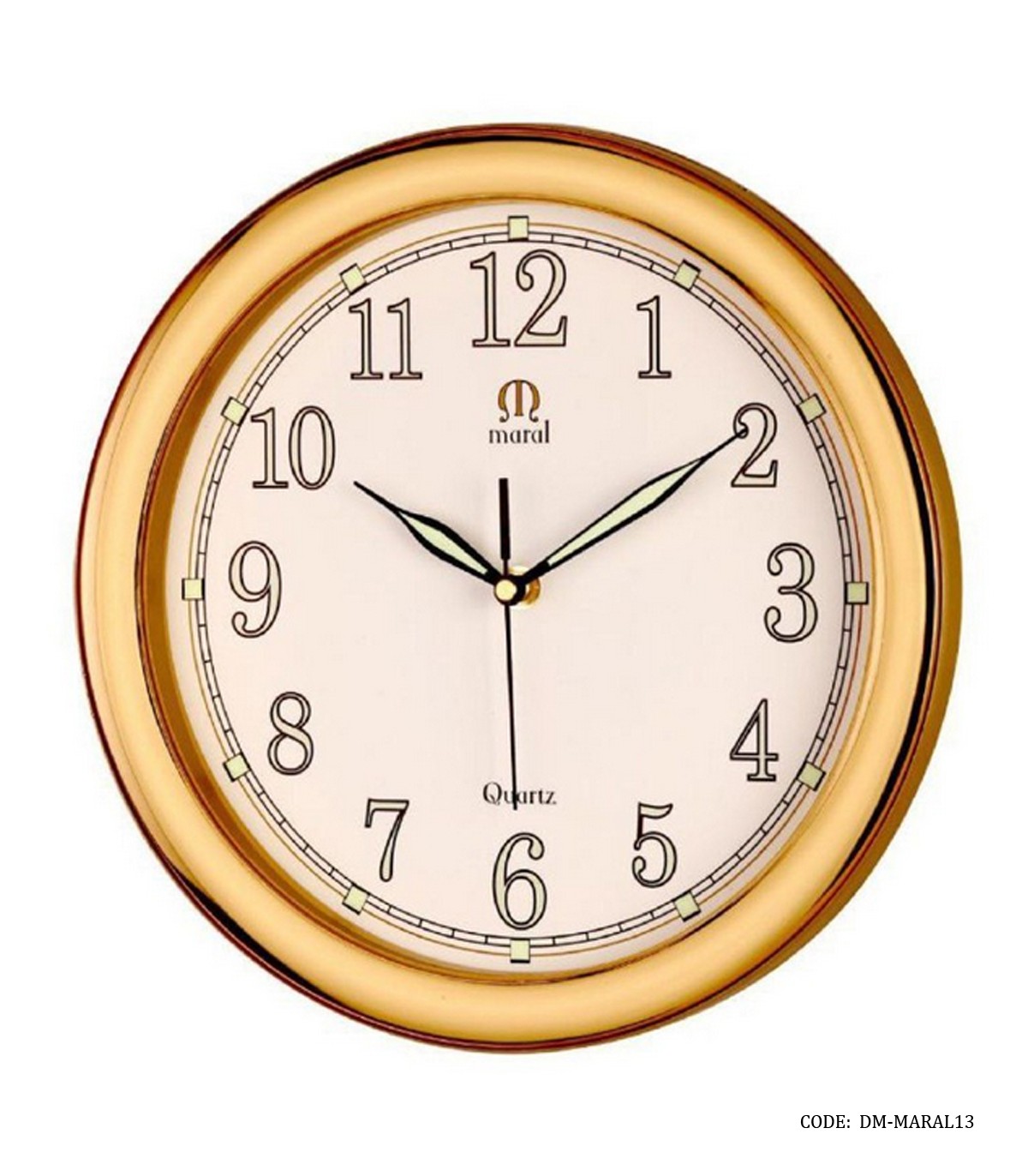 ساعت گرد دیواری قاب پلاستیکی مارال صفحه شب نما طلایی