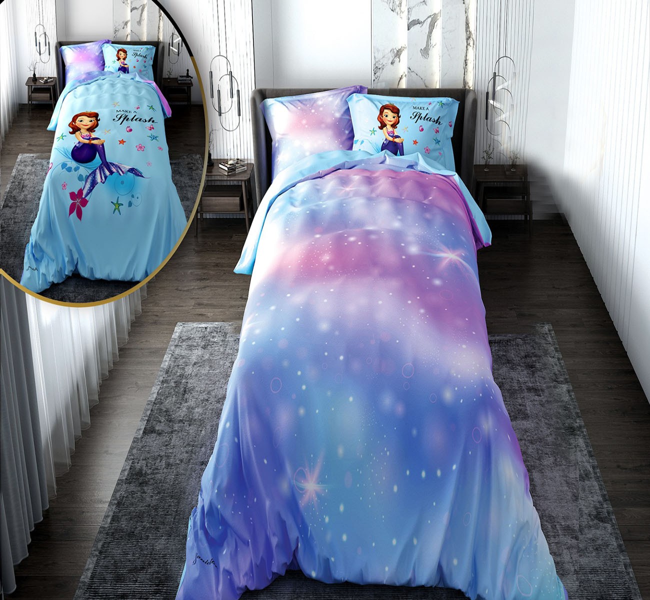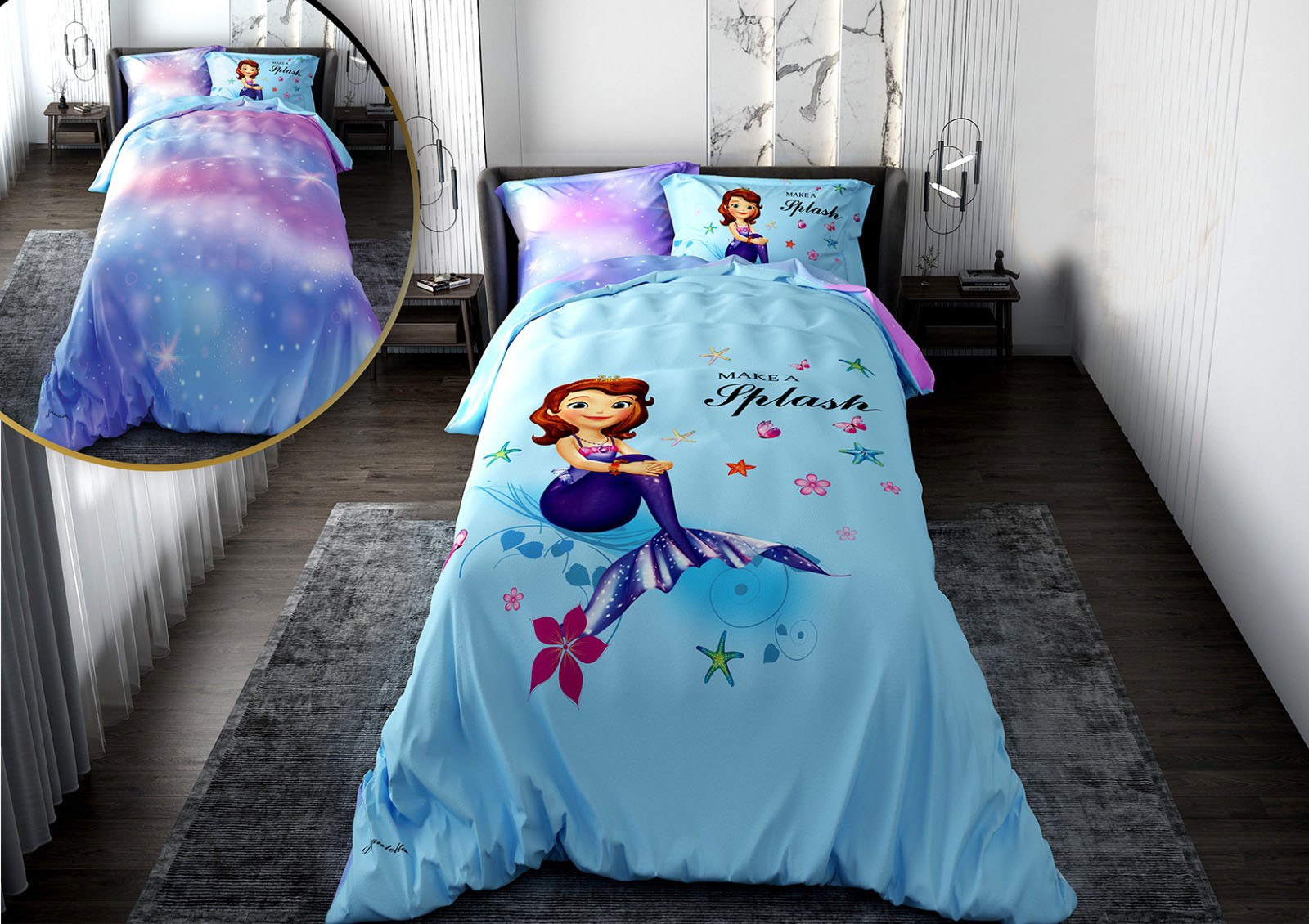 روتختی دخترانه با لحاف دو رویه طرح پری دریایی مدل Make a