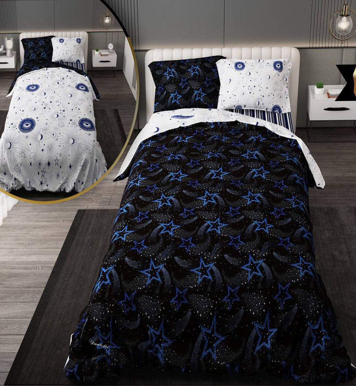 سرویس روتختی نوجوان پسرانه و دخترانه با لحاف دو رویه طرحدار طرح ماه وستاره