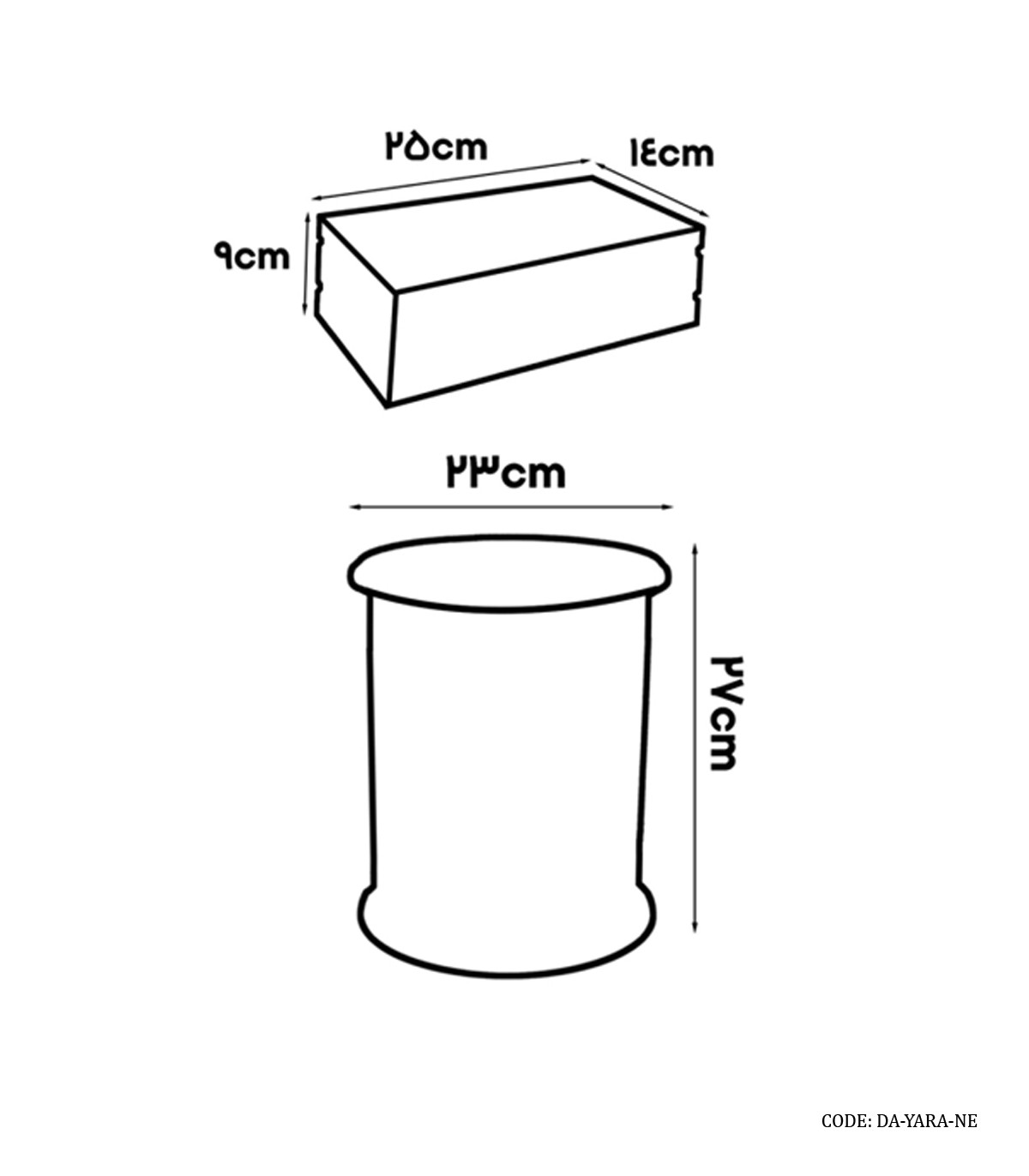 - شامل یک عدد سطل و یک عدد جعبه دستمال