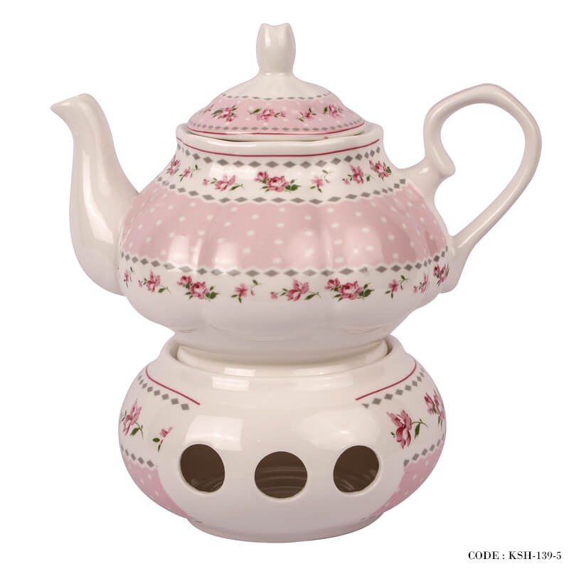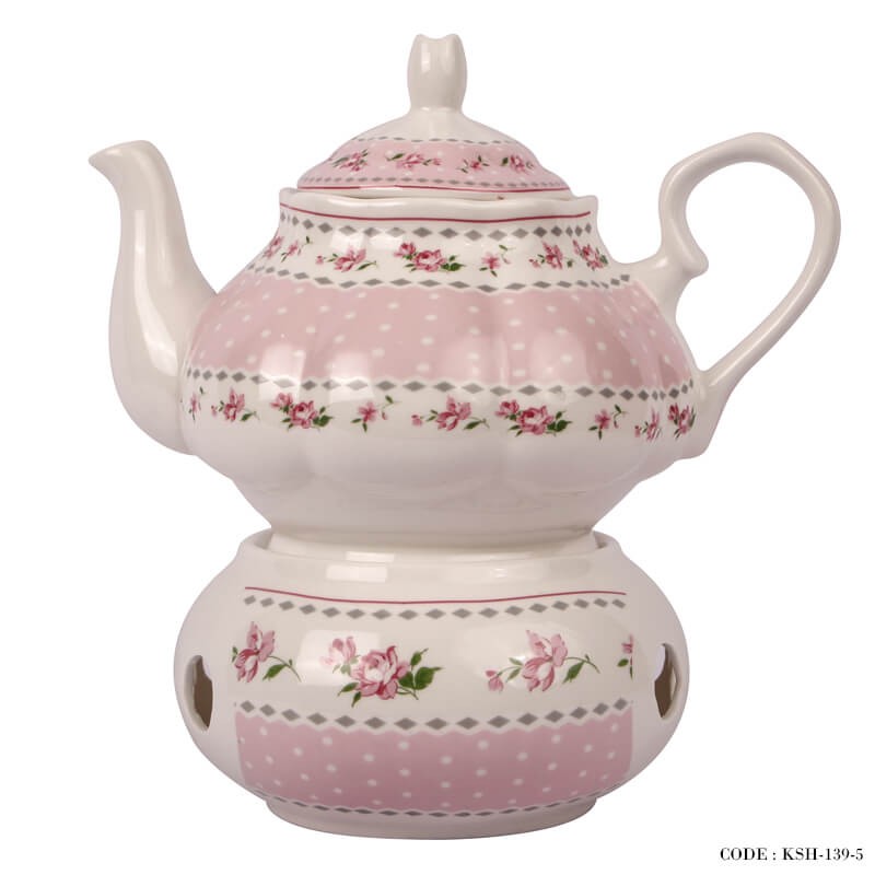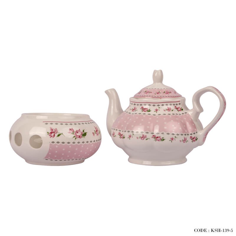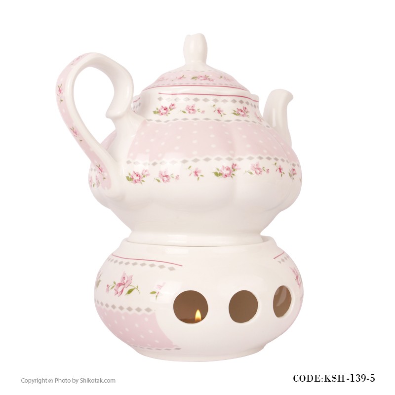 قوری چینی وارمر دار طرح آنجلا صورتی