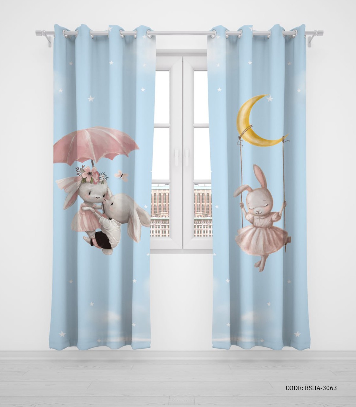 پرده پانچی دو تکه اتاق دخترانه طرح خرگوش مدل Be Free
