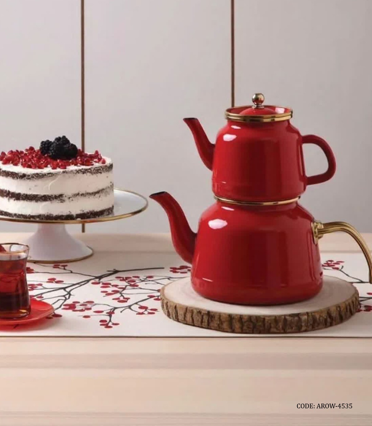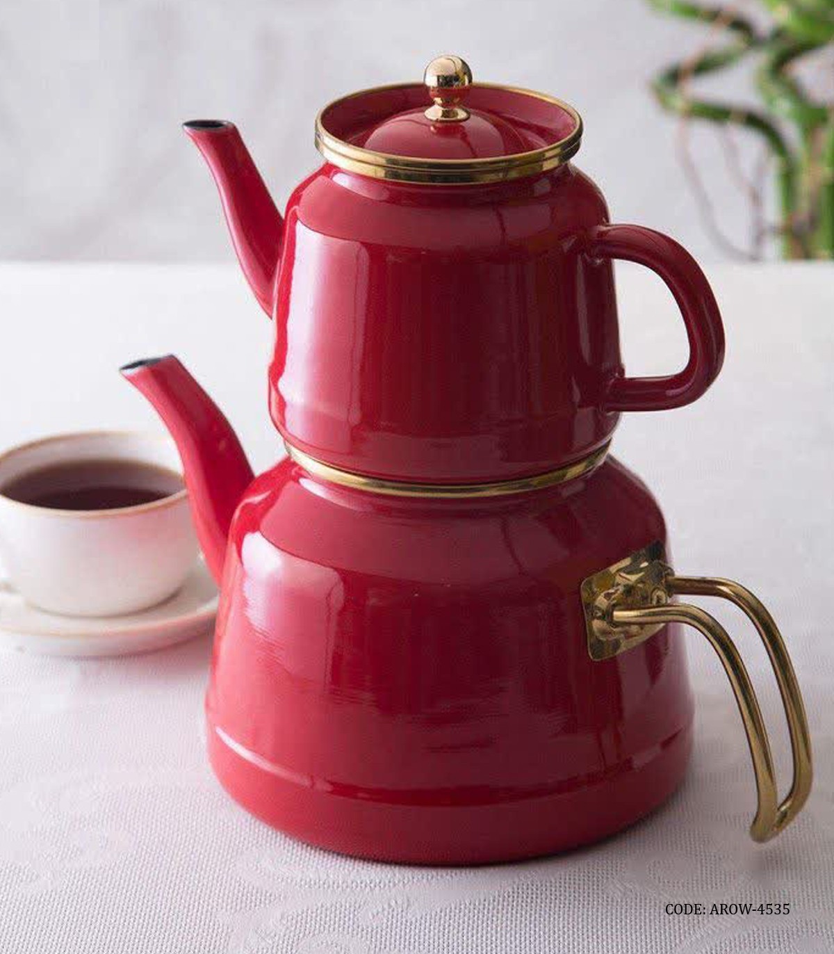 کتری قوری لعابی ترکیه ای برند AROW مدل آنیل قرمز