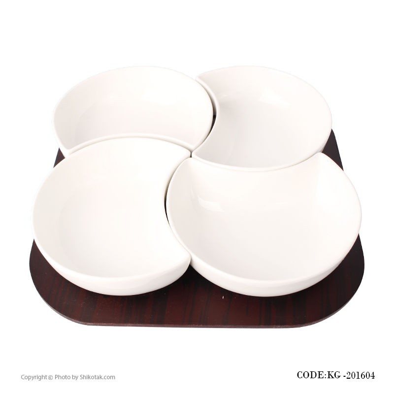ظرف اردو خوری سرامیکی طرح قلب شامل سه ظرف گود کوچک طرح قلب است که در داخل یک بشقاب سرامیکی قرار دارد . یک دسته فلزی به بشقاب سرامیکی وصل است و امکان جابجایی راحت تر ظرف را فراهم می کند .