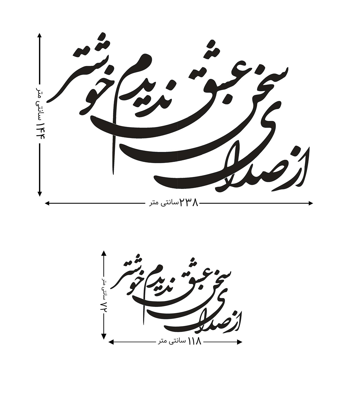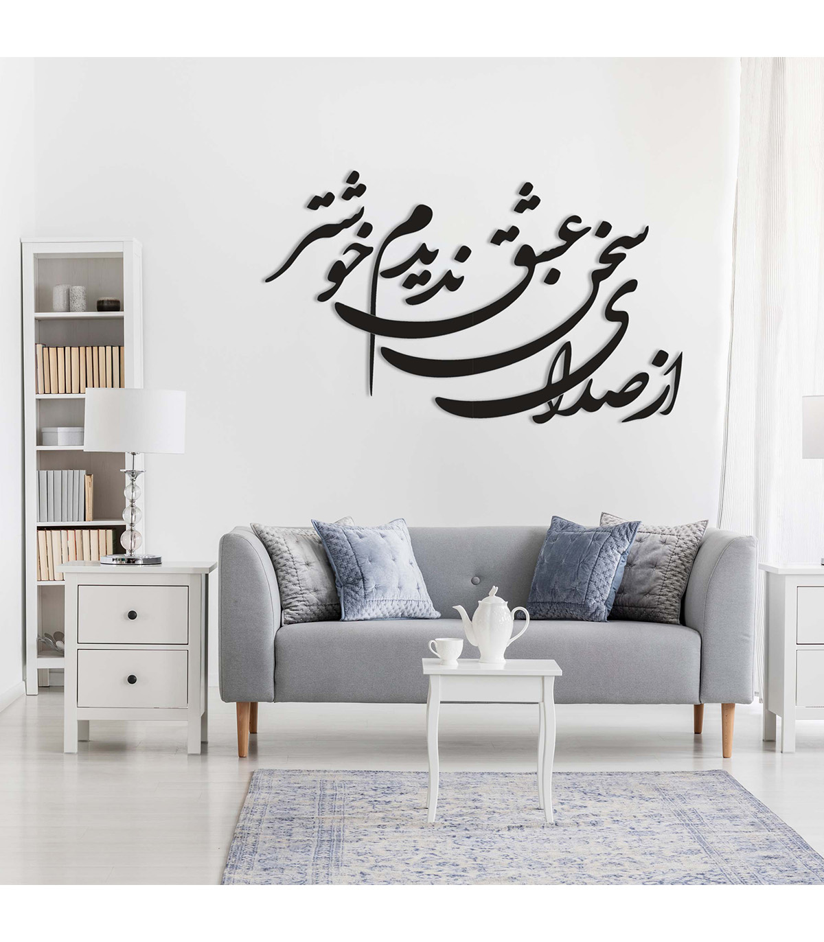استیکر چوبی خوشنویسی طرح از صدای سخن عشق ندیدم خوشتر