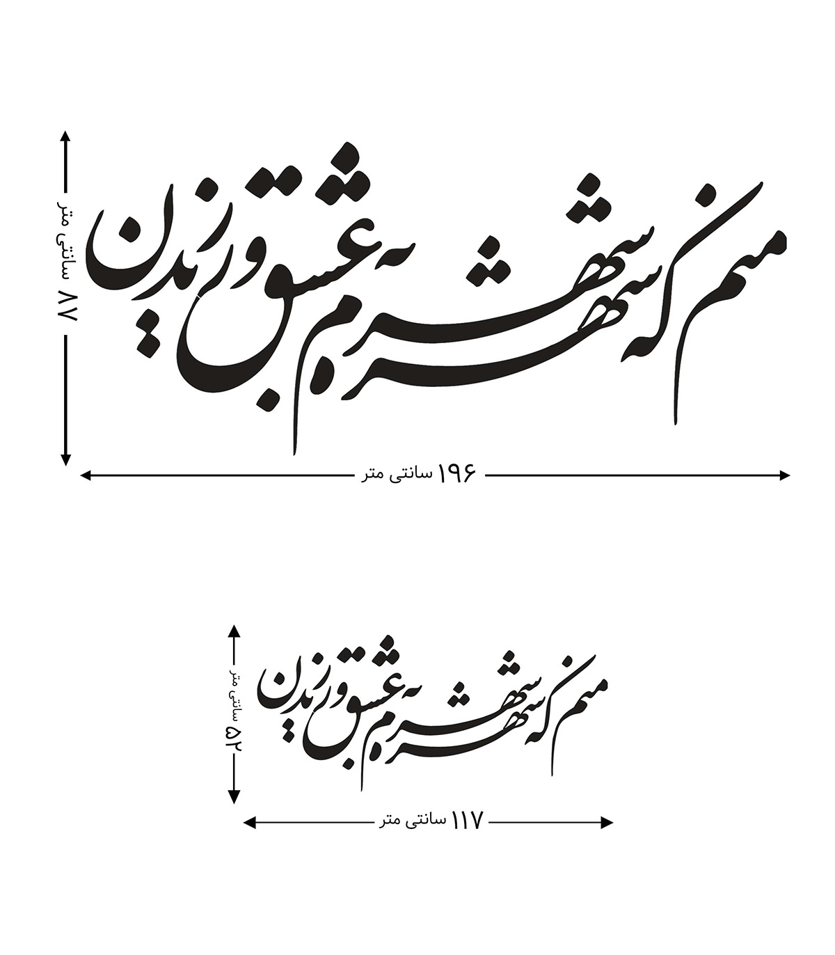 تابلو چسبی خوش نویسی طرح منم که شهره شهرم به عشق ورزیدن مدل ۲