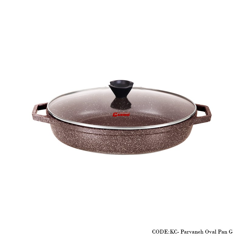 تابه بیضی گرانیتی دو دسته سایز ۳۳ مدل سیلور دورو قهوه ای