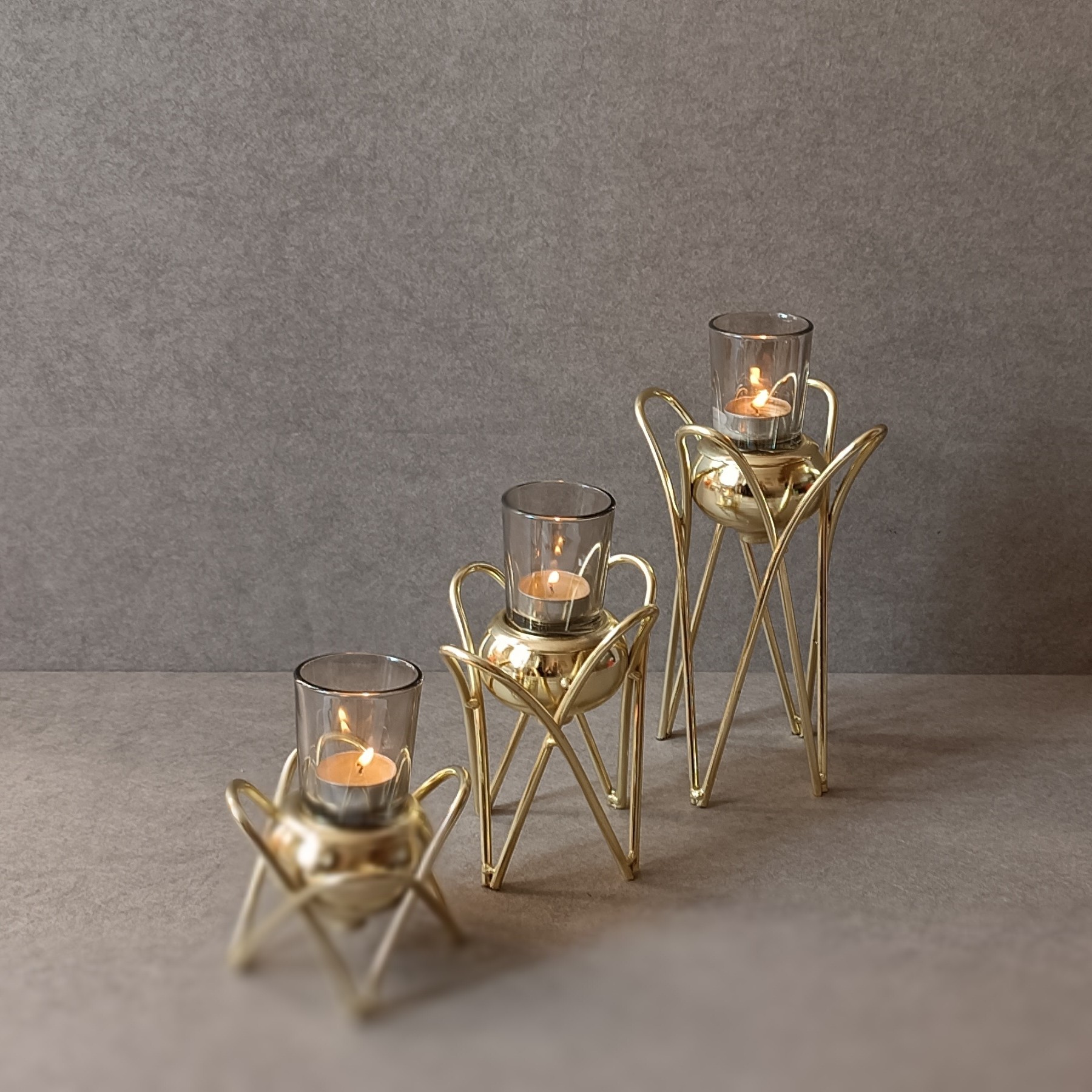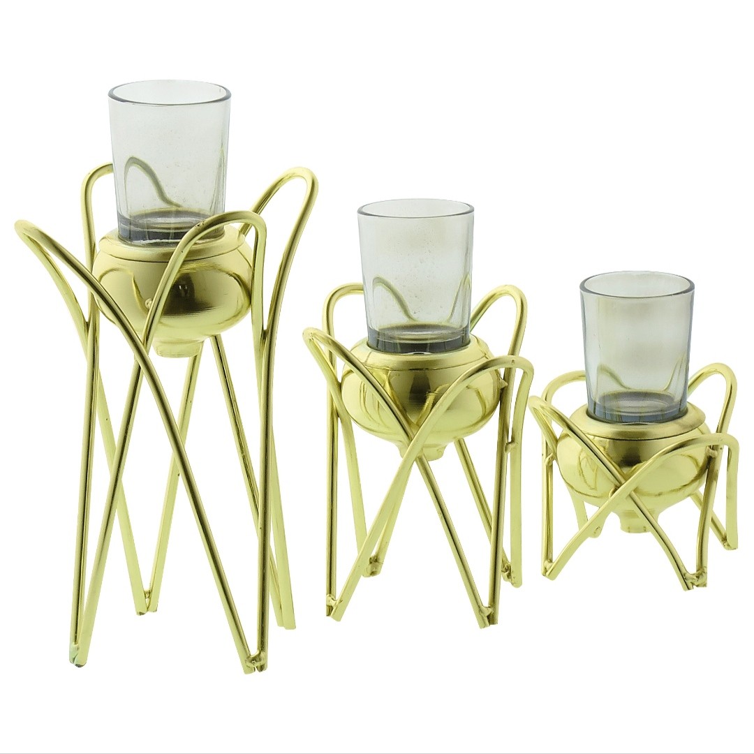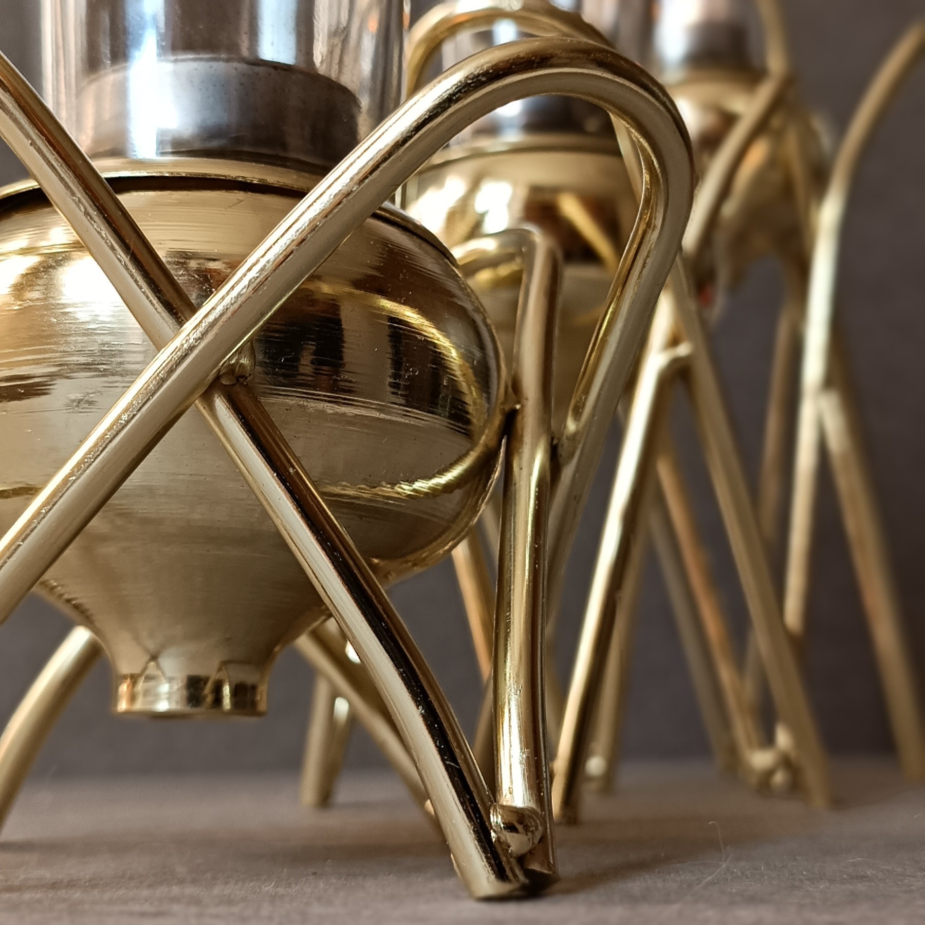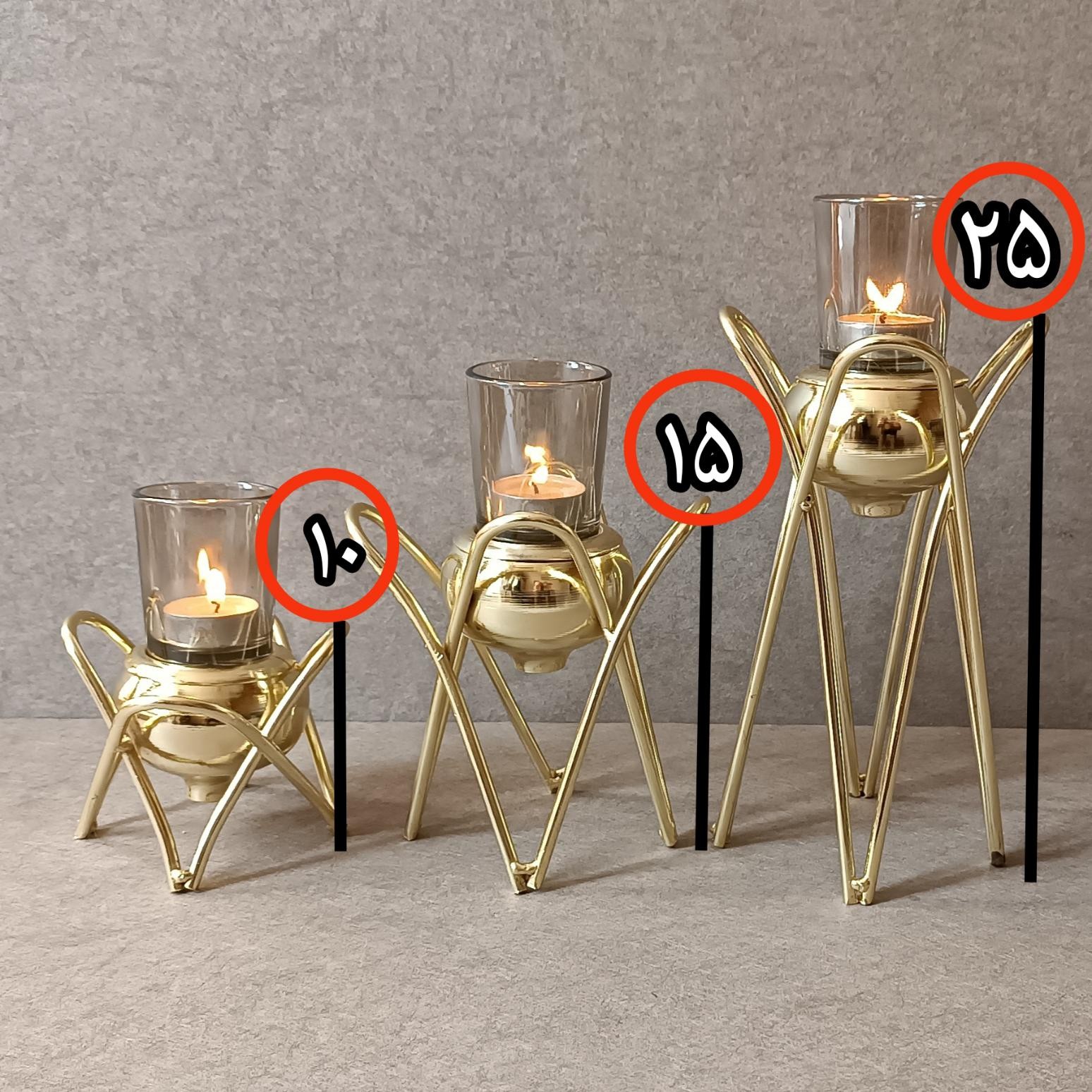 جاشمعی فلزی طلایی سه شعله گژک طرح لاله