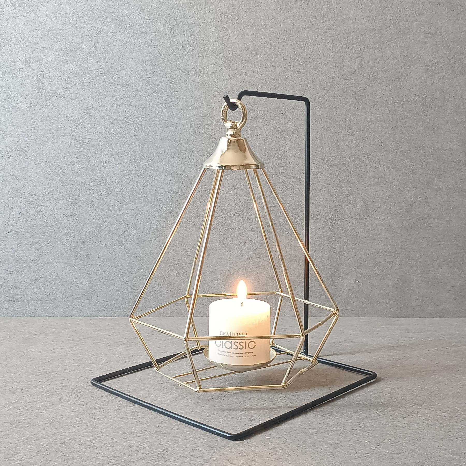 جاشمعی فلزی مشکی طلایی گژک مدل فانوسی