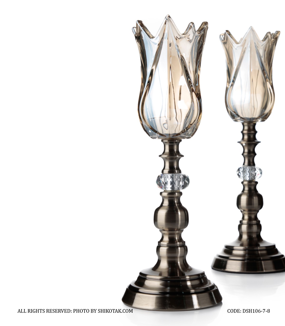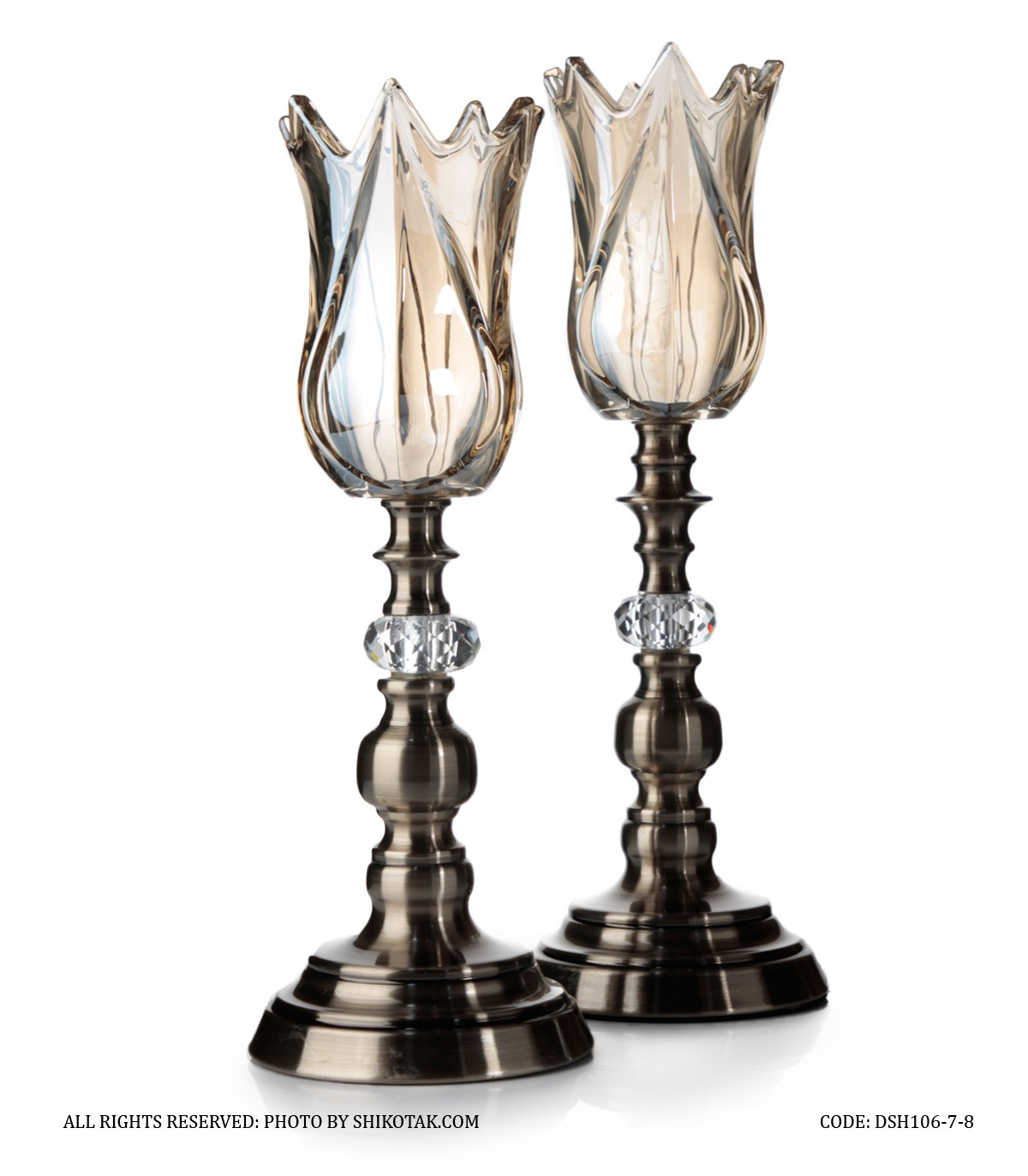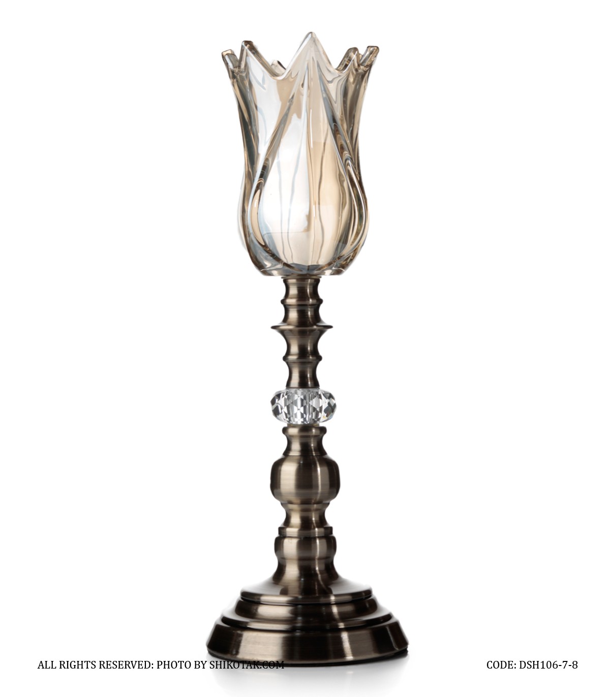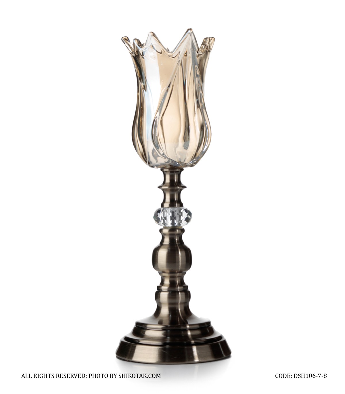 جاشمعی پایه برنزی کریستالی طرح لاله عباسی