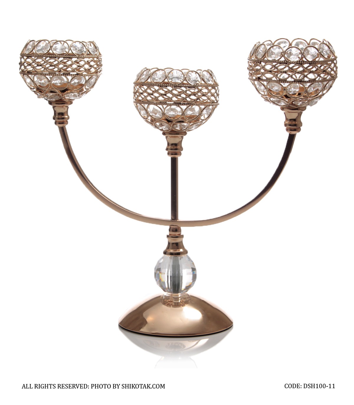 جاشمعی استیل طلایی ۳ شعله مدل Soha