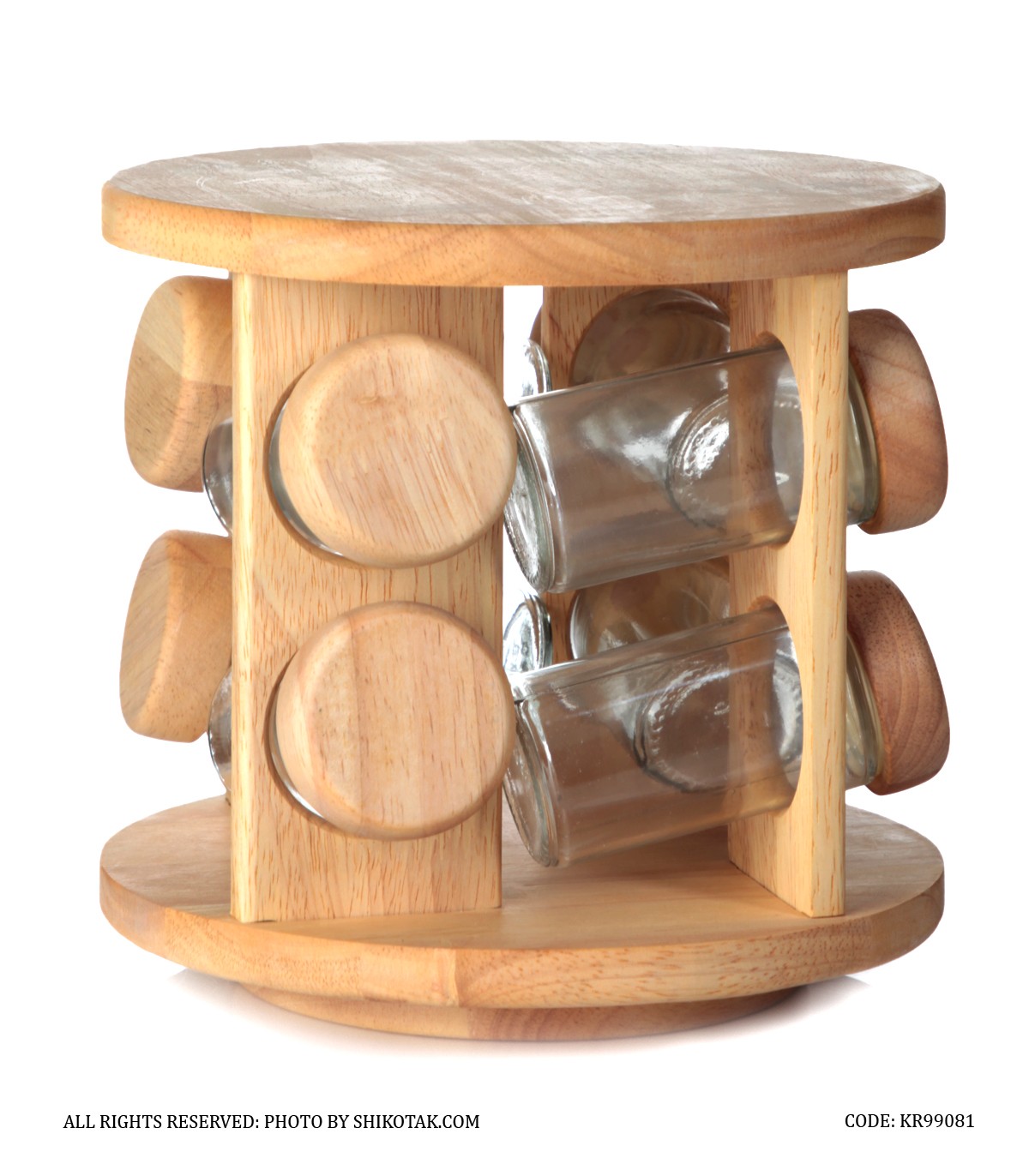 جا ادویه چوبی چرخشی ۸ تایی با استند چوبی جسیکا