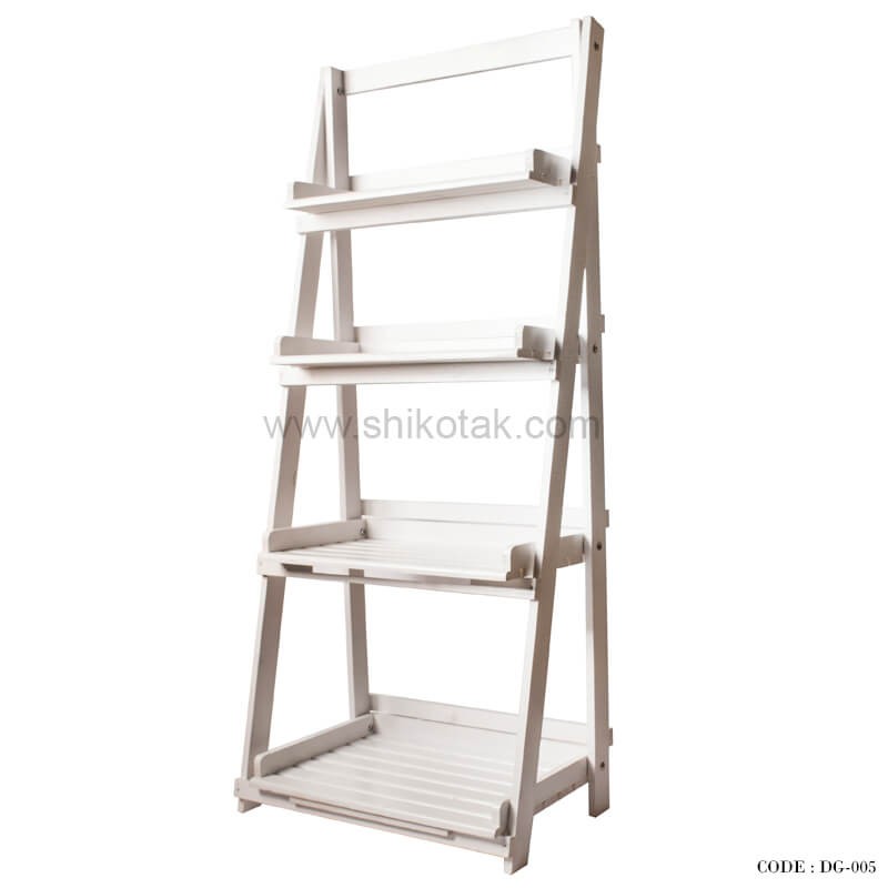 جا گلدانی ۴ طبقه چوبی تاشو سفید