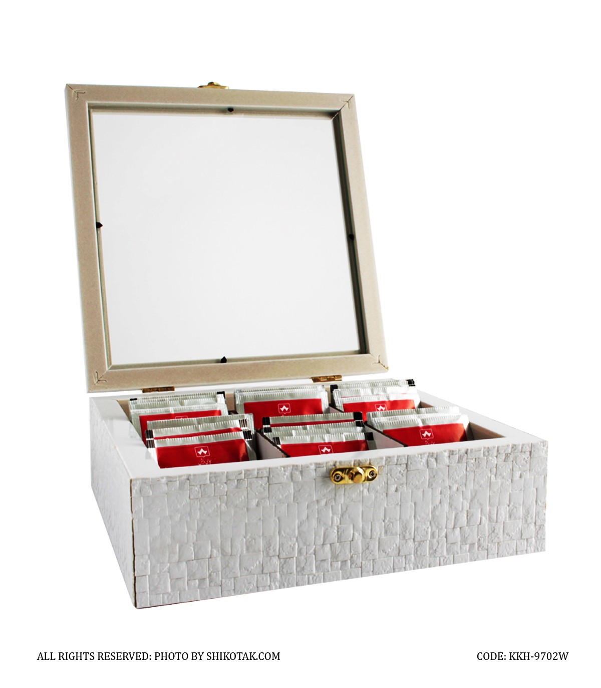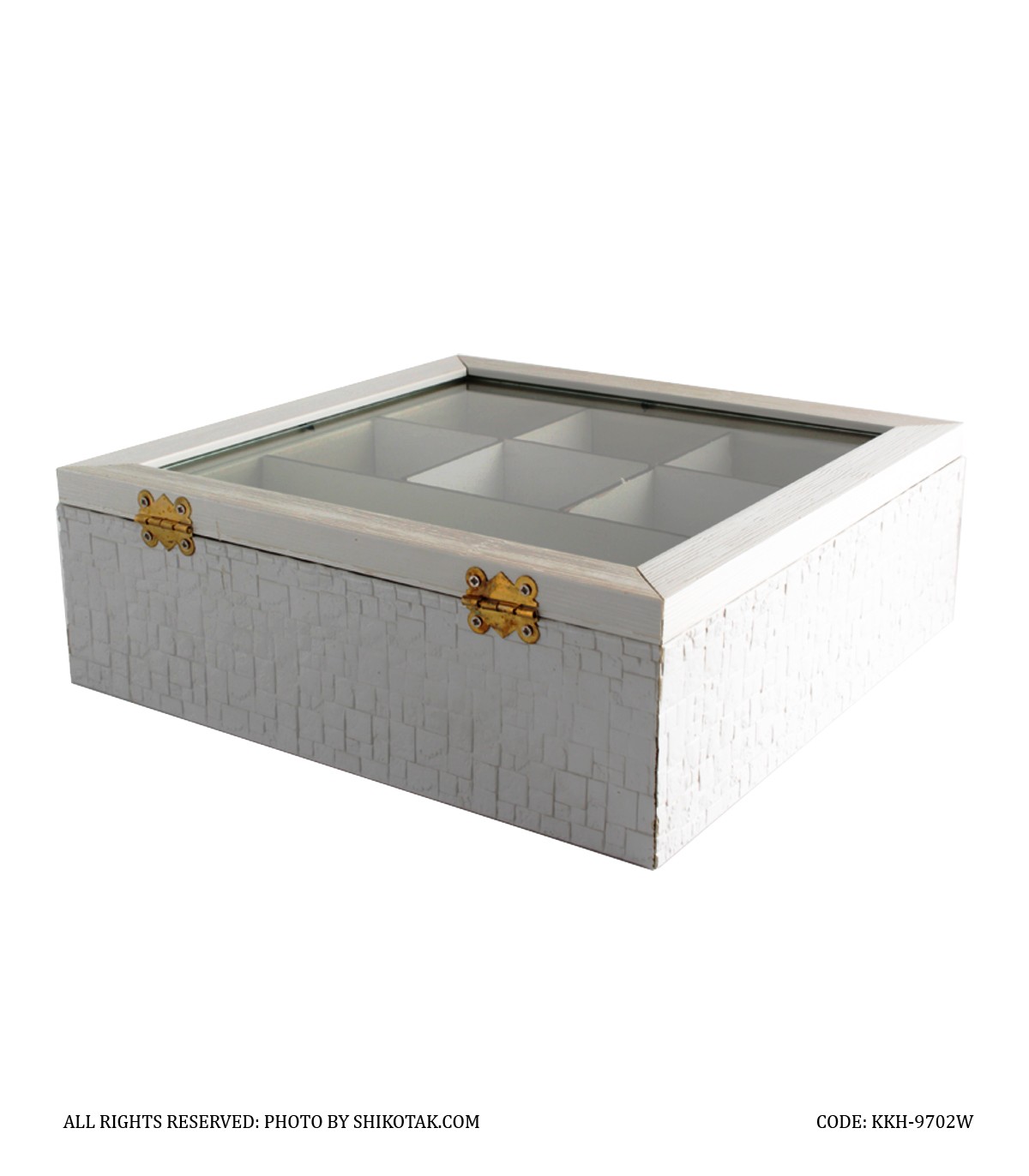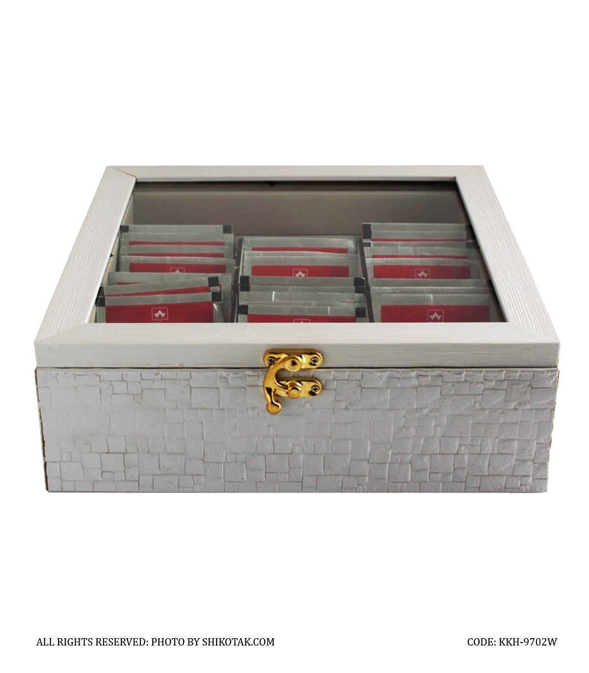 جعبه تی بگ سفید طرحدار هفت خانه چوبی