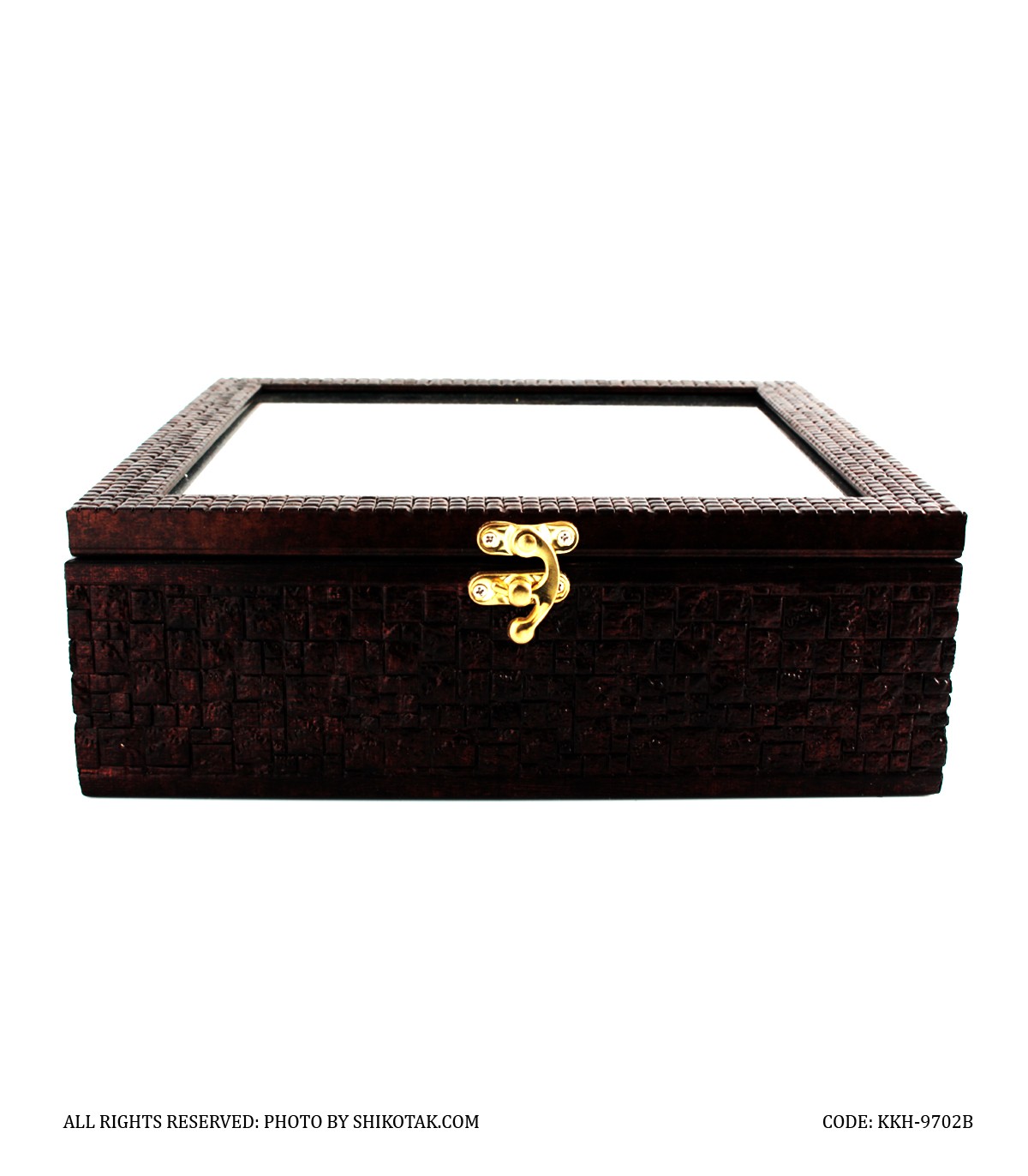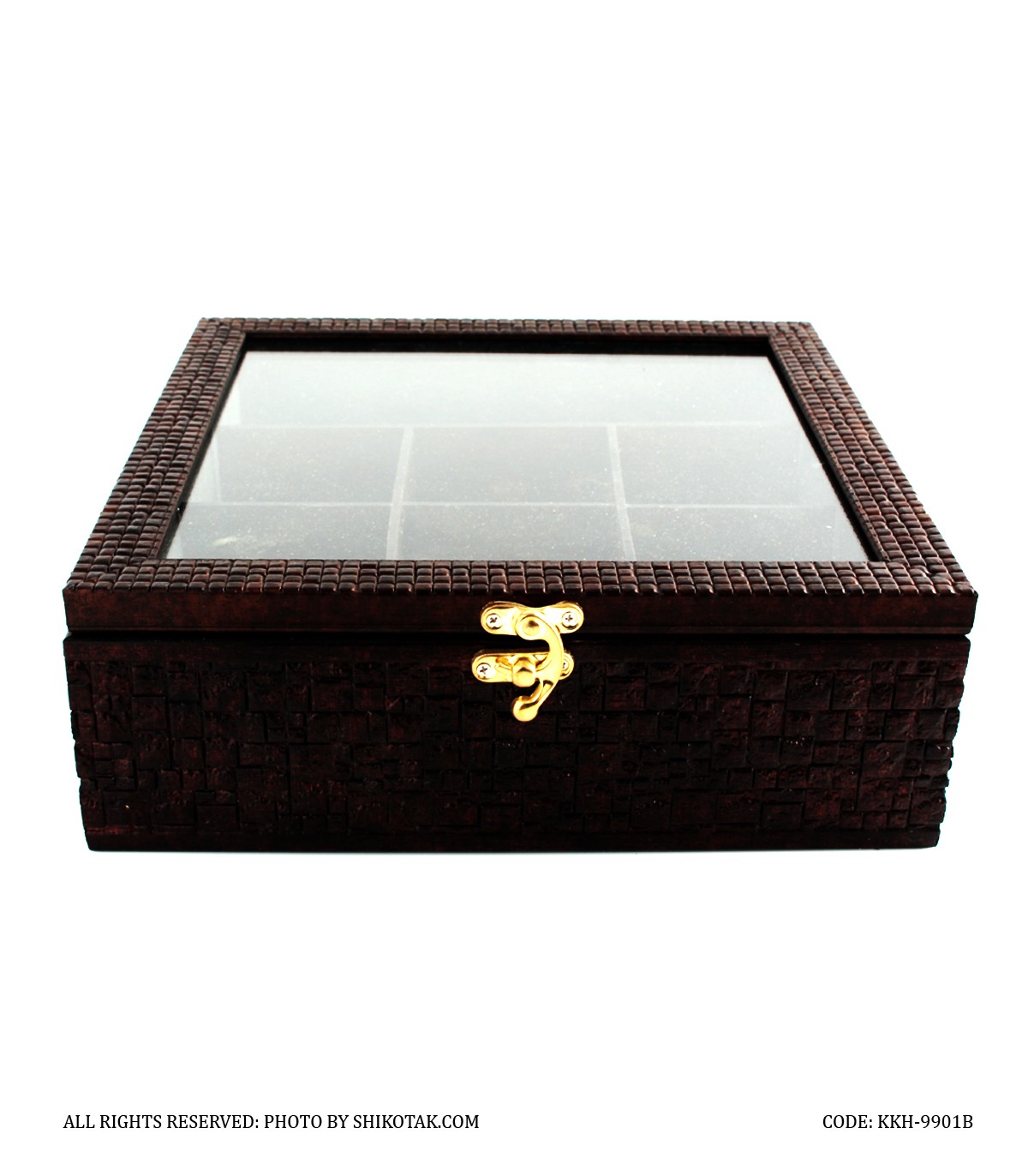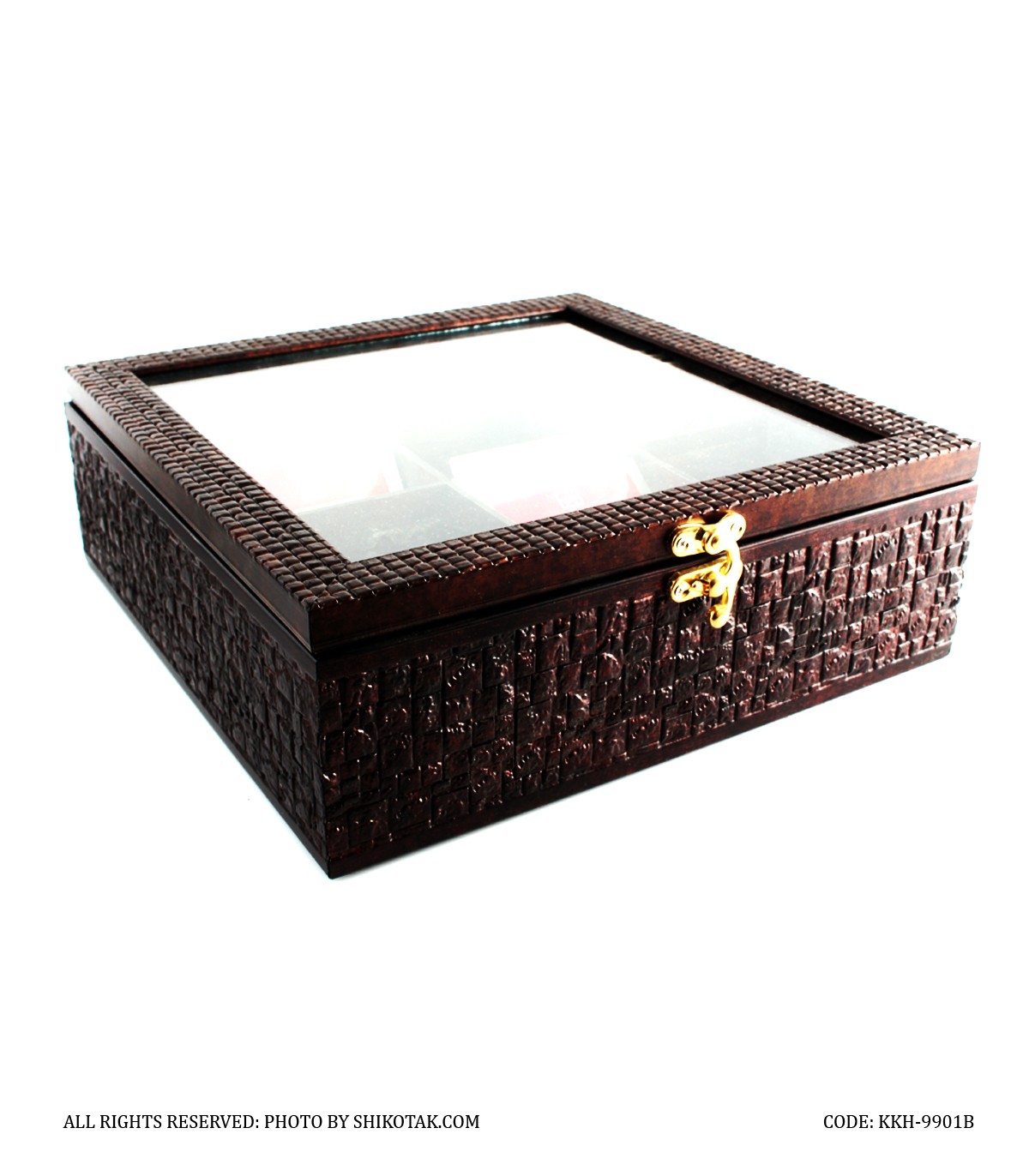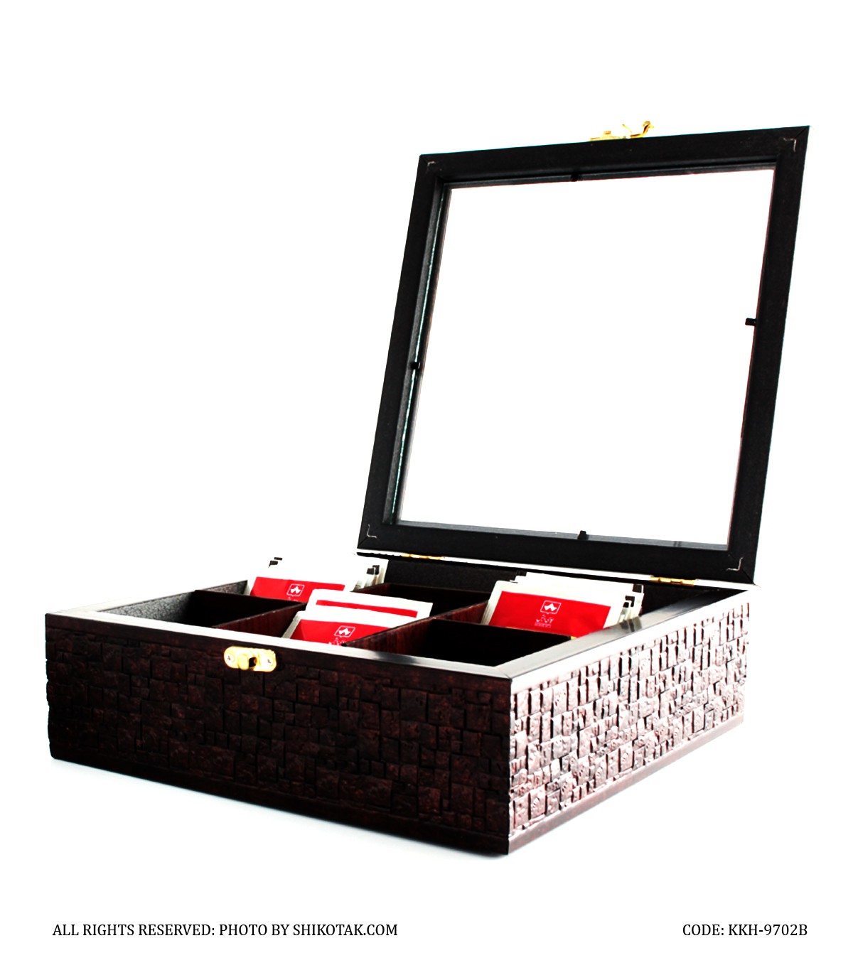 جعبه تی بگ هفت خانه چوبی قهوه ای طرحدار