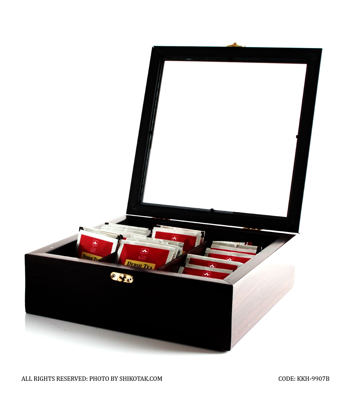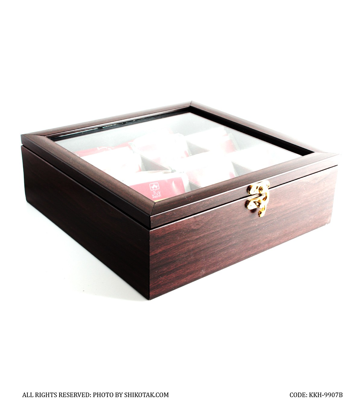 جعبه تی بگ چوبی هفت خانه قهوه ای ساده