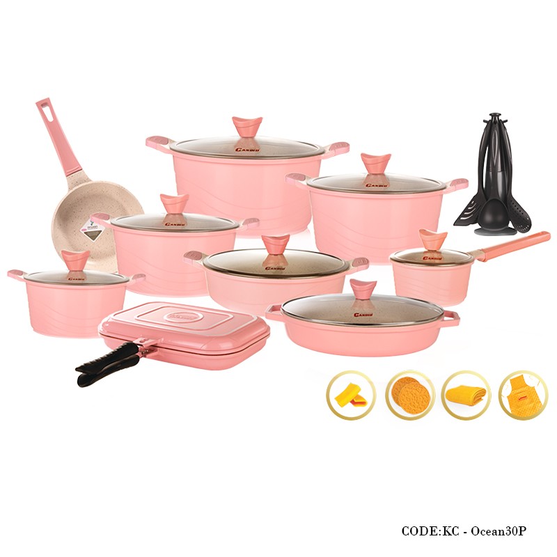 سرویس قابلمه گرانیتی ۳۰ پارچه مدل اوشن گلبهی