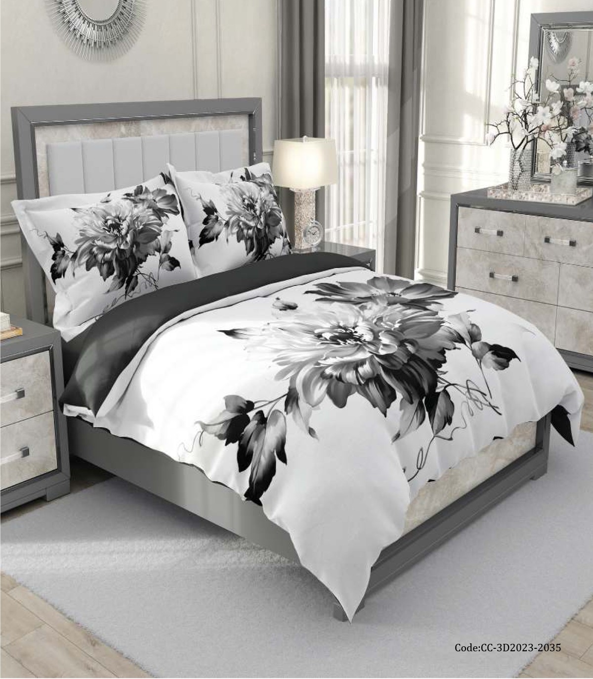 روتختی دو نفره سفید مشکی طرح گل مدل رها