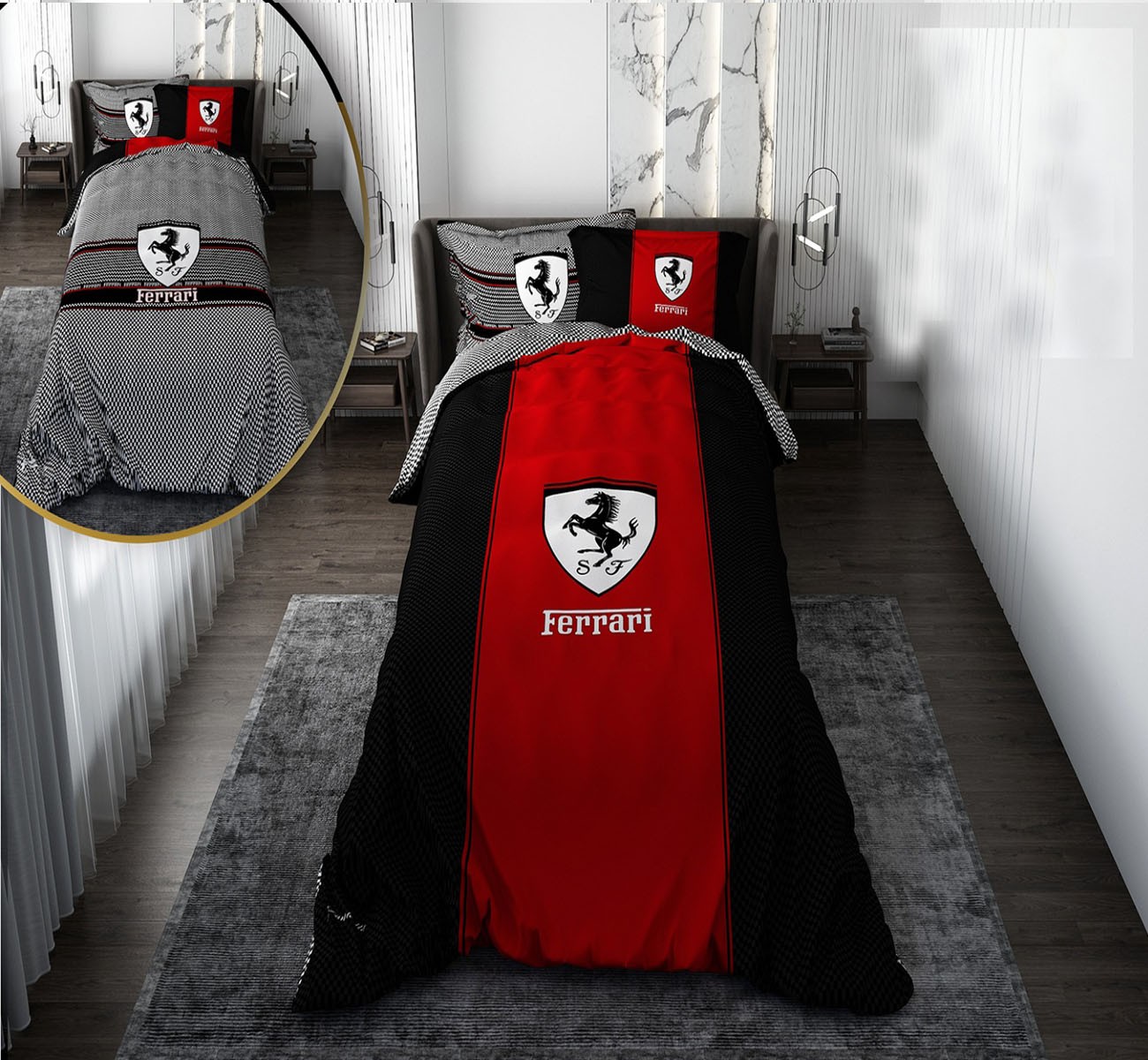 روتختی پسرانه قرمز مشکی با لحاف دو رویه طرح Ferrari