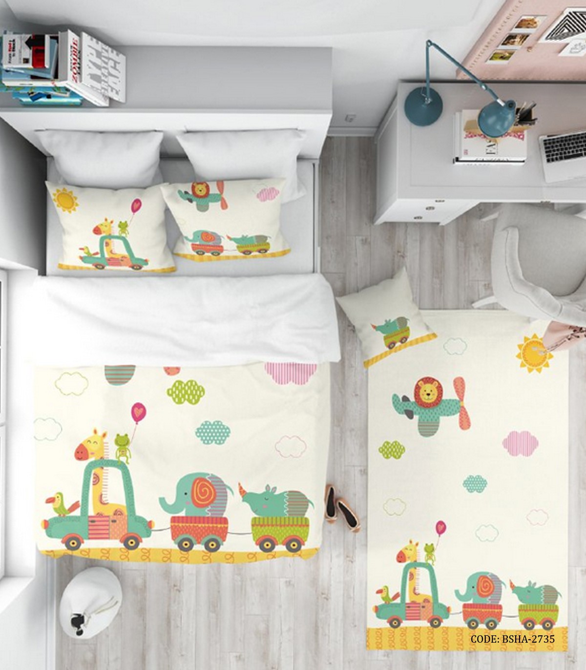 روتختی کودکانه پسرانه ۴ تکه طرح ماشین مدل Animal Carnival