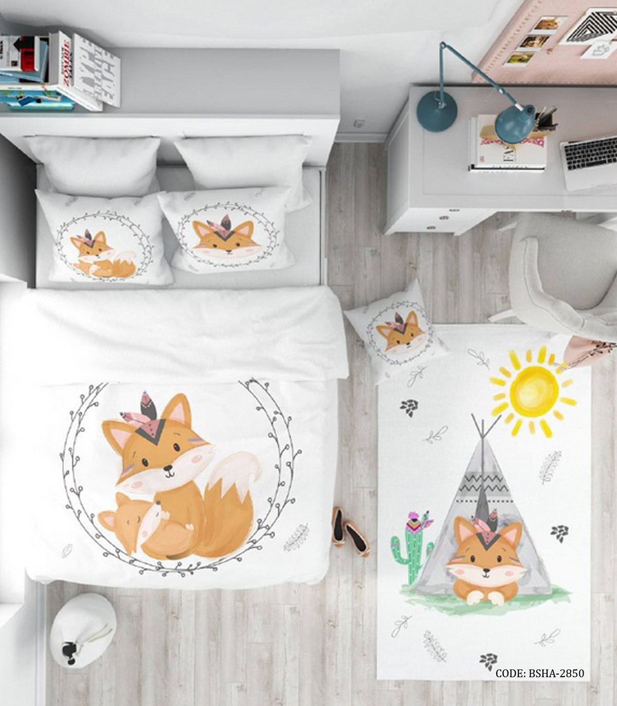 روتختی کودک دخترانه ۴ تکه طرح روباه مدل Cute Fox