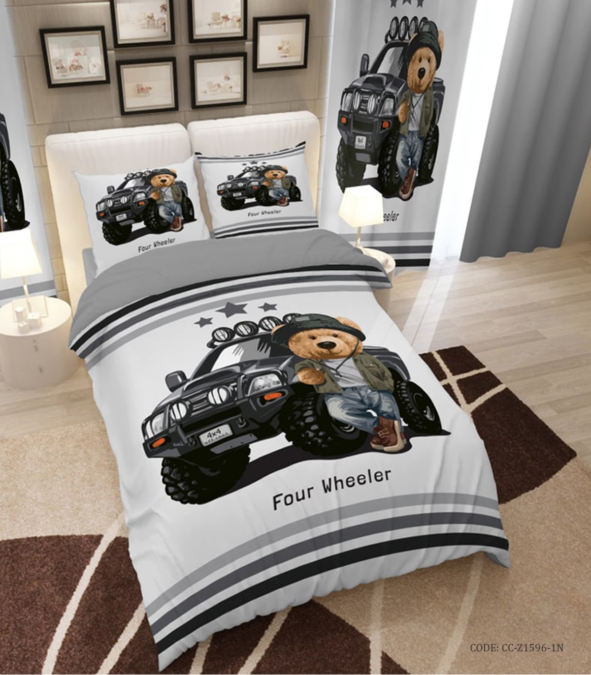 روتختی کودک پسرانه طرح ماشین و خرس پولو مدل Four Wheeler