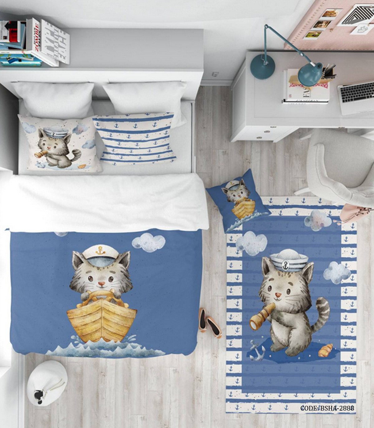 روتختی کودک پسرانه ۴ تکه طرح گربه ملوان مدل Sailor Cat