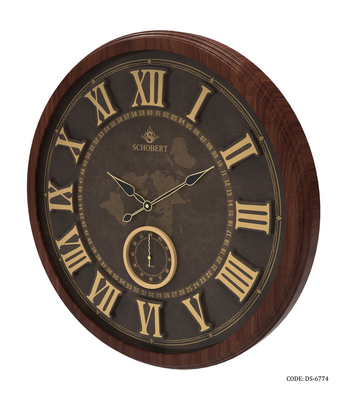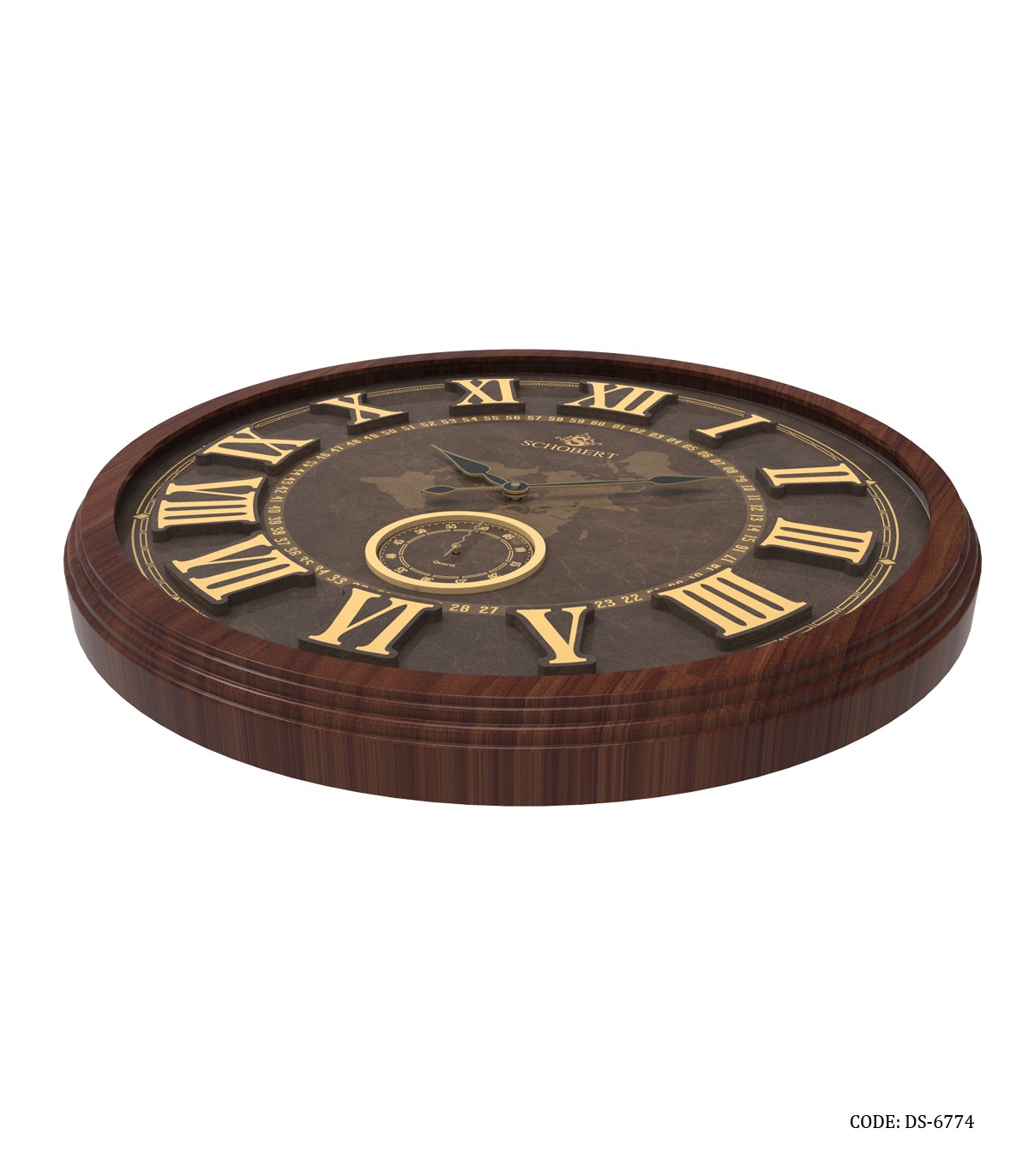 ساعت دیواری اعداد رومی چوبی قهوه ای شوبرت مدل ۶۷۷۴