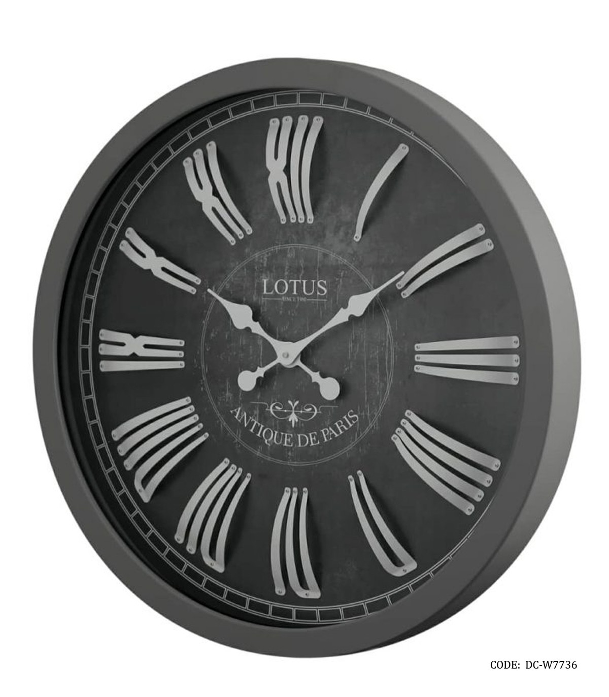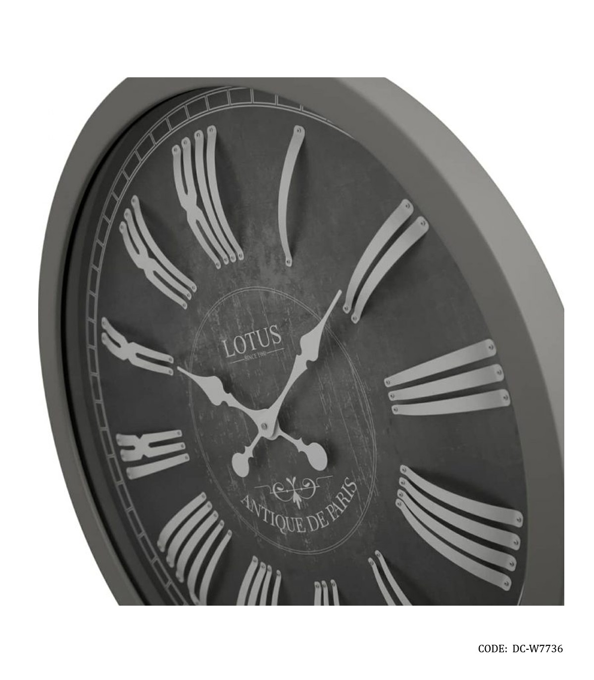ساعت دیواری بزرگ چوبی طوسی لوتوس مدل GONZALES