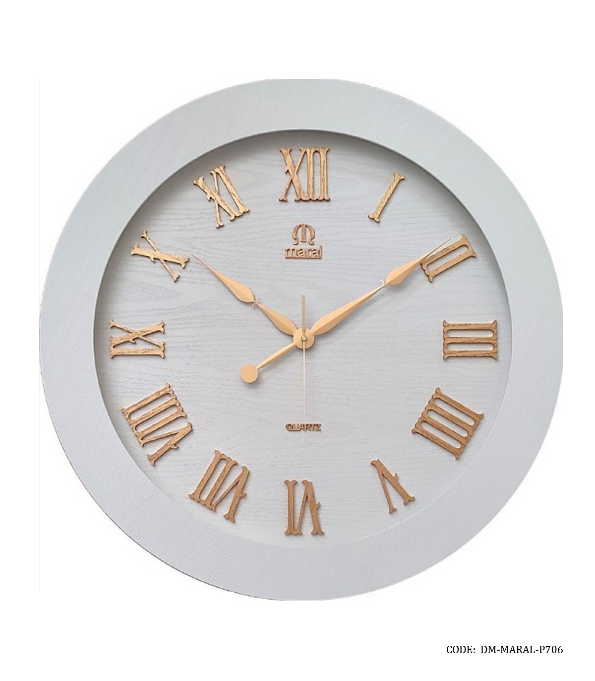 ساعت دیواری سفید چوبی مارال مدل ۷۰۶ اعداد رومی
