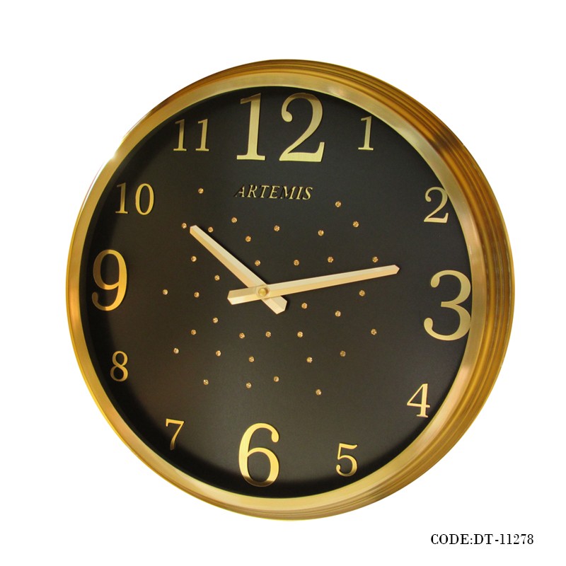 ساعت دیواری نگینی طلایی صفحه مشکی