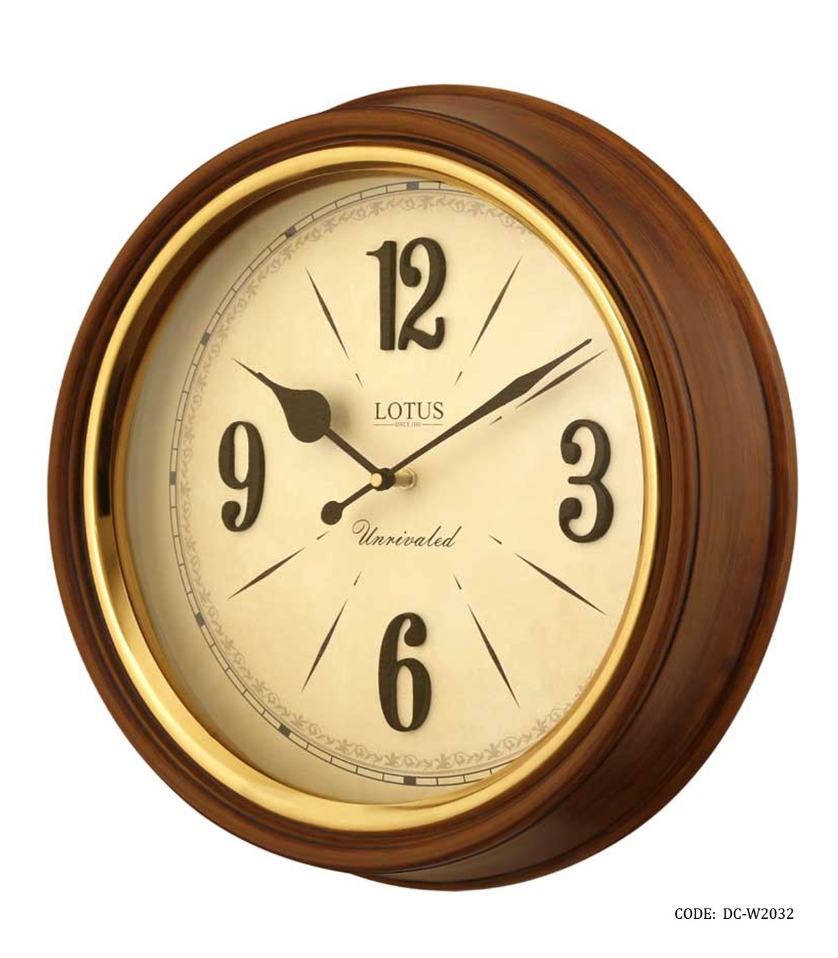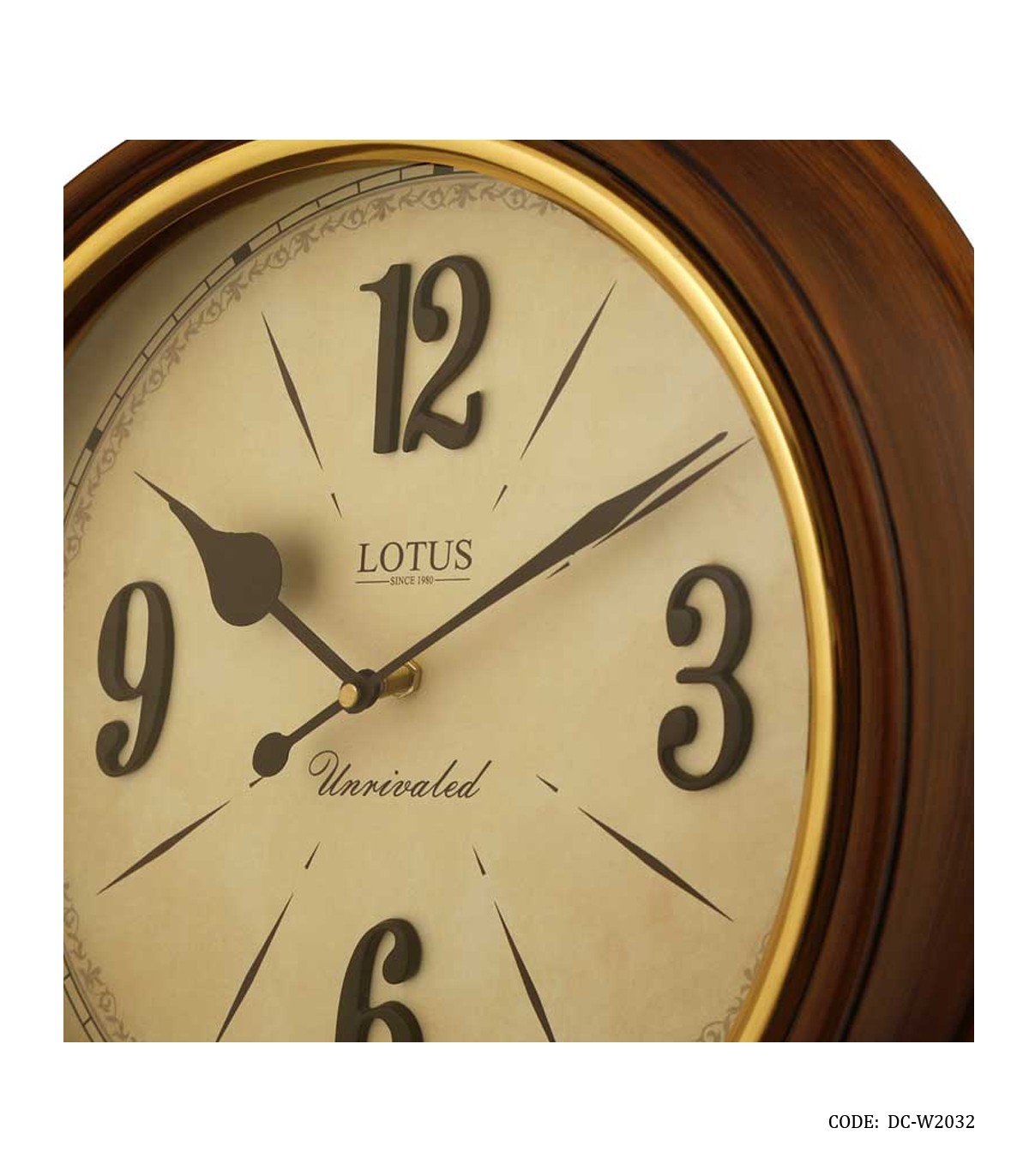 ساعت دیواری چوبی گرد رینگ فلزی لوتوس مدل HAGEN