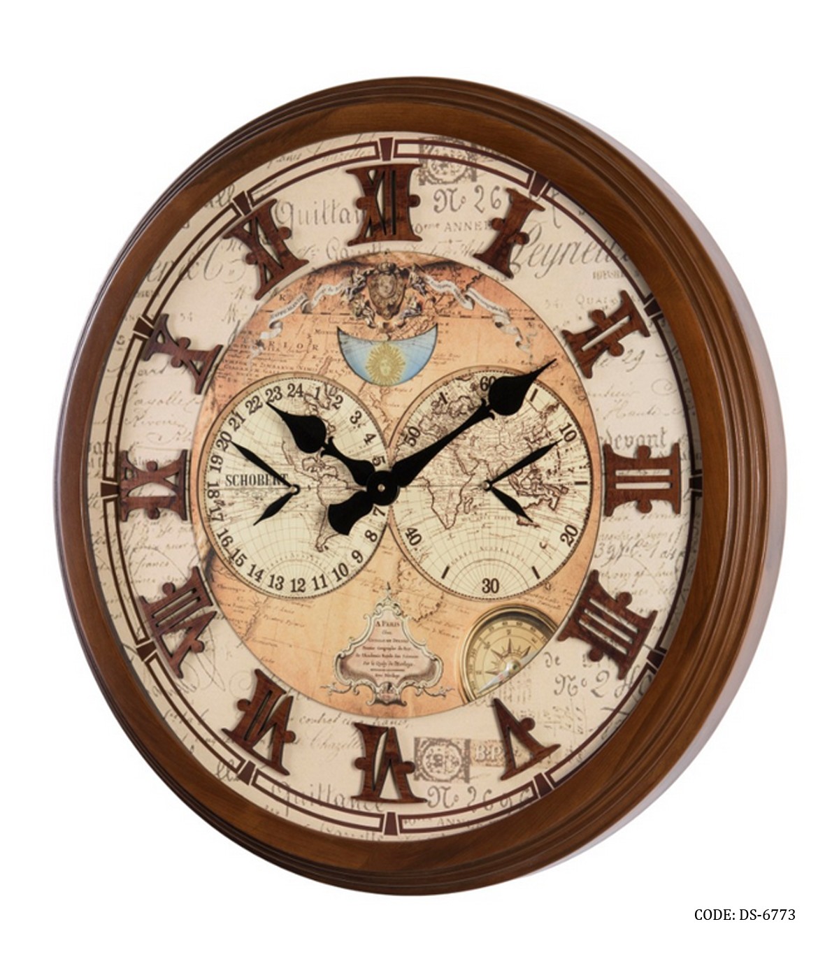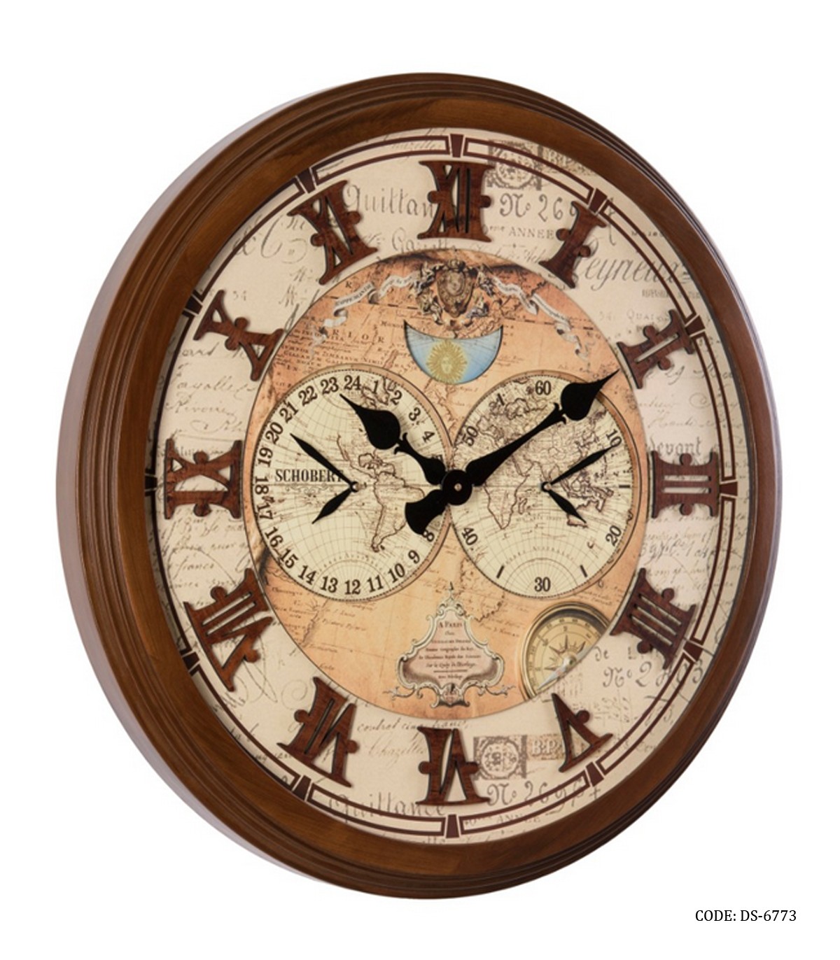 ساعت دیواری گرد چوبی ۴ موتوره شوبرت مدل ۶۷۷۳