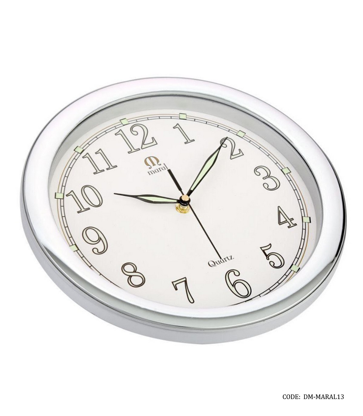 ساعت گرد دیواری قاب پلاستیکی مارال صفحه شب نما سیلور