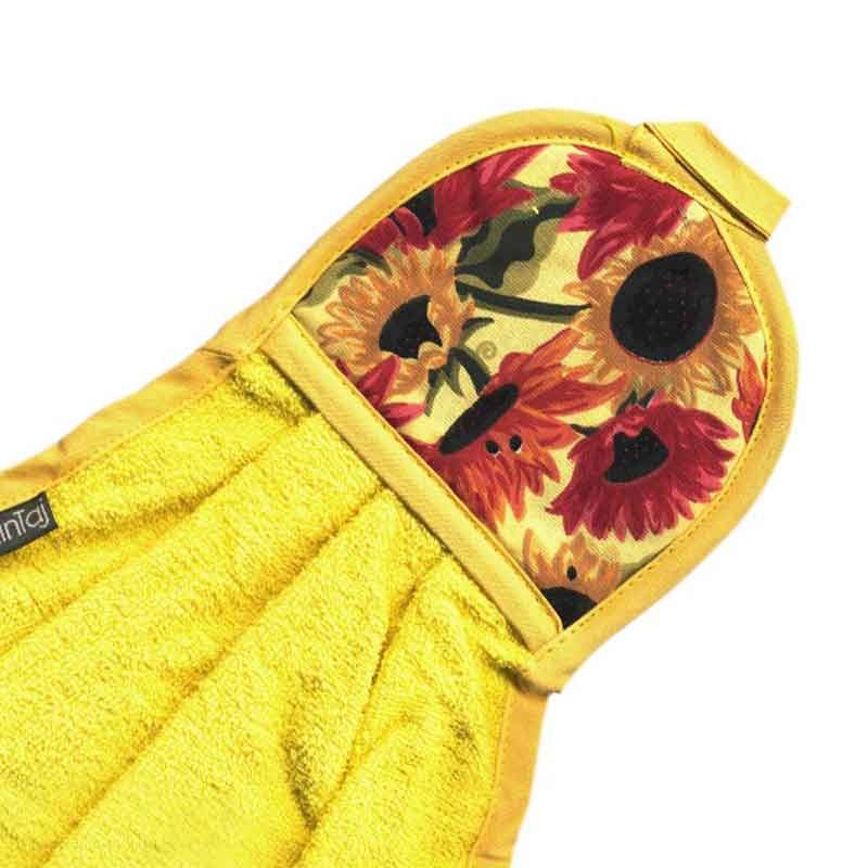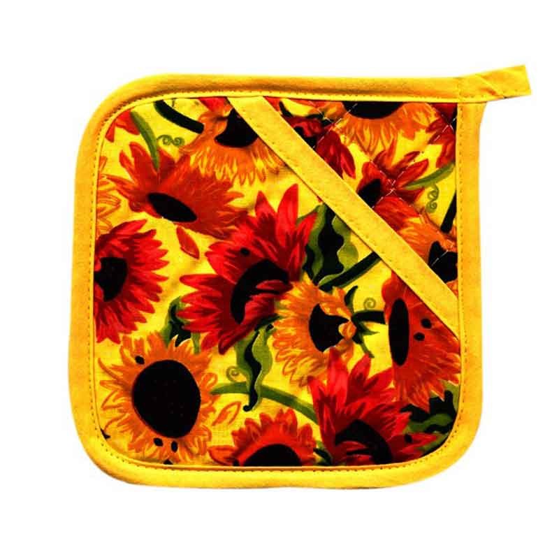 ست پارچه ای آشپزخانه طرح آفتابگردان یک سرویس کامل آشپزخانه است که شامل: دستگیره – دستکش فر – دستگیره یخچال – دستمال سفره – پیشبند ضد آب – روقوری – حوله آشپزخانه – کیسه سبزی – سبد نان- زیر بشقابی است.
