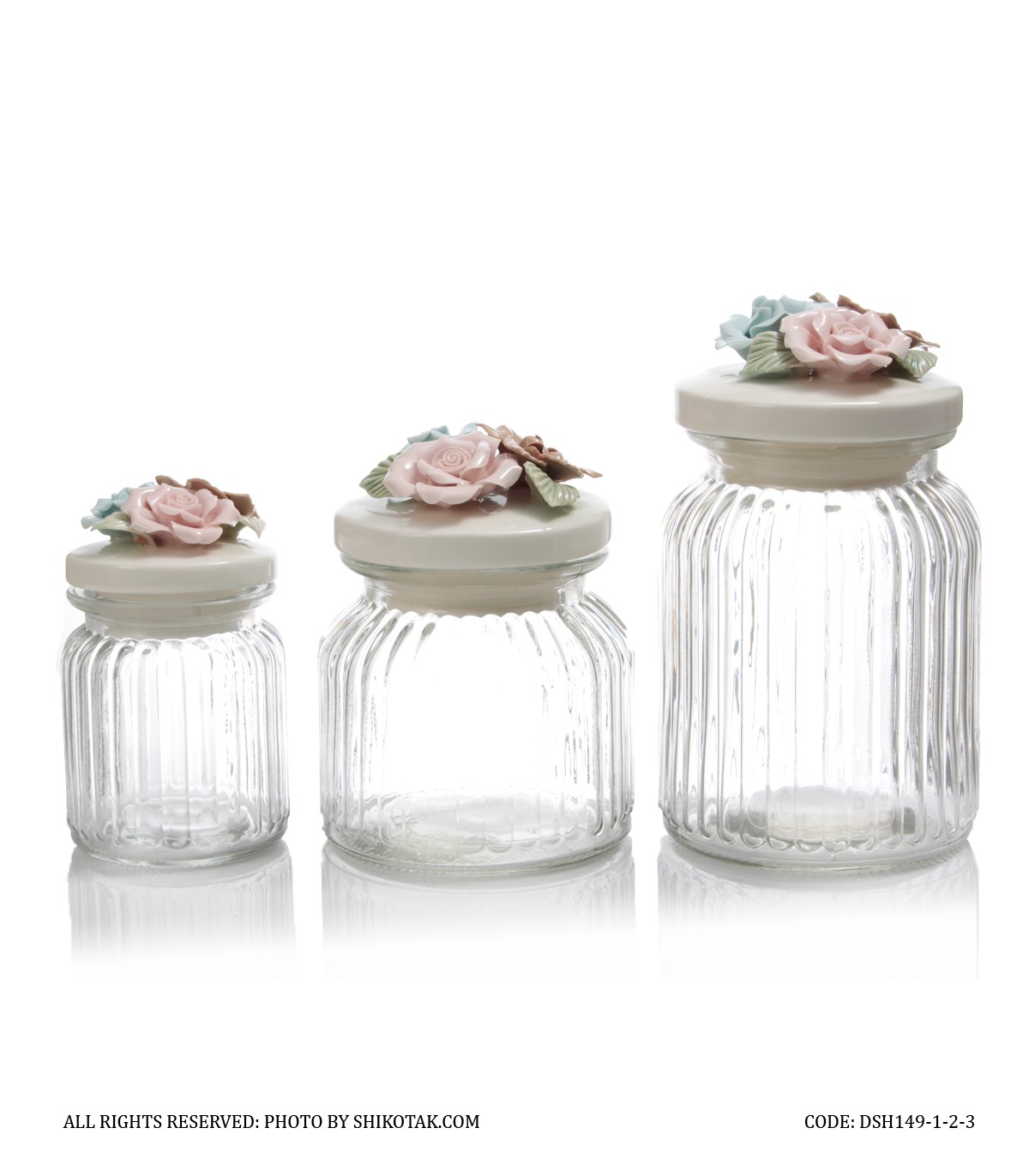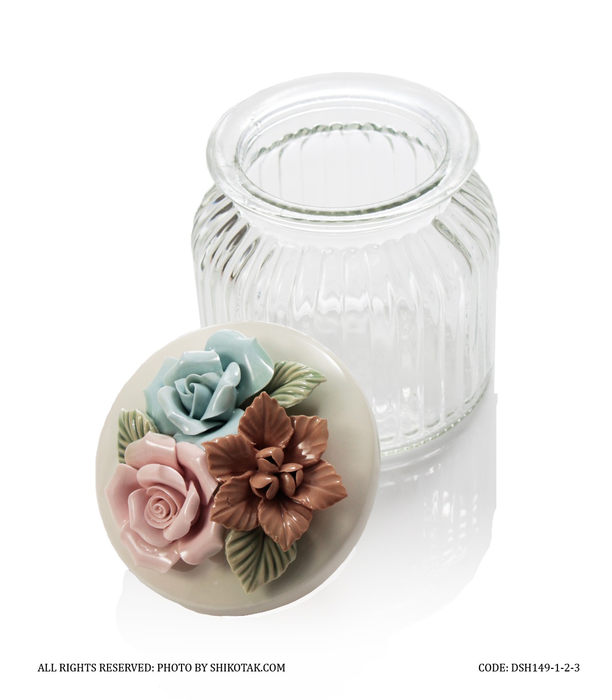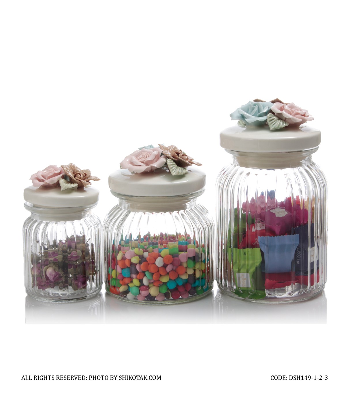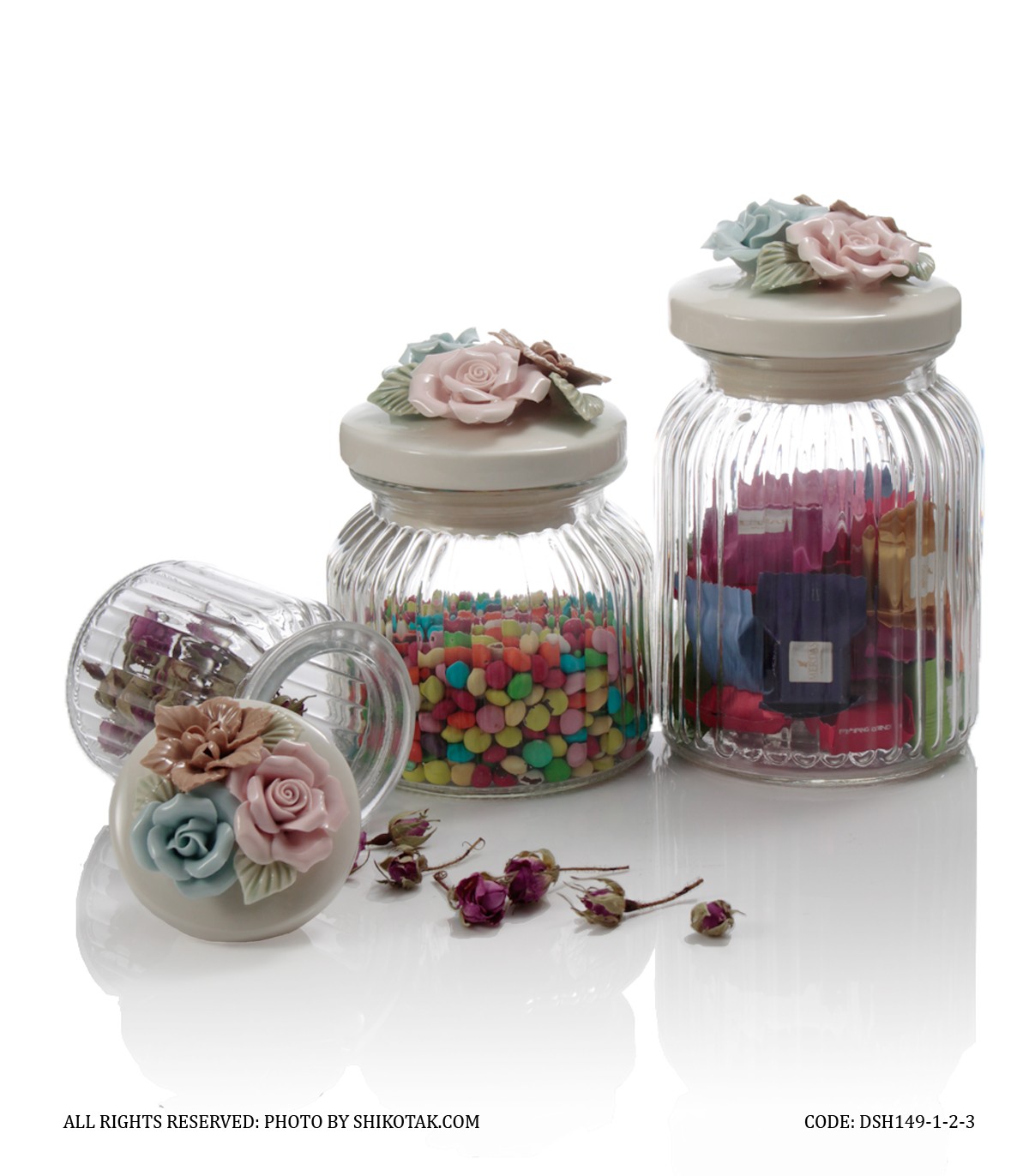 بانکه حبوبات شیشه ای در گل دار مدل رز