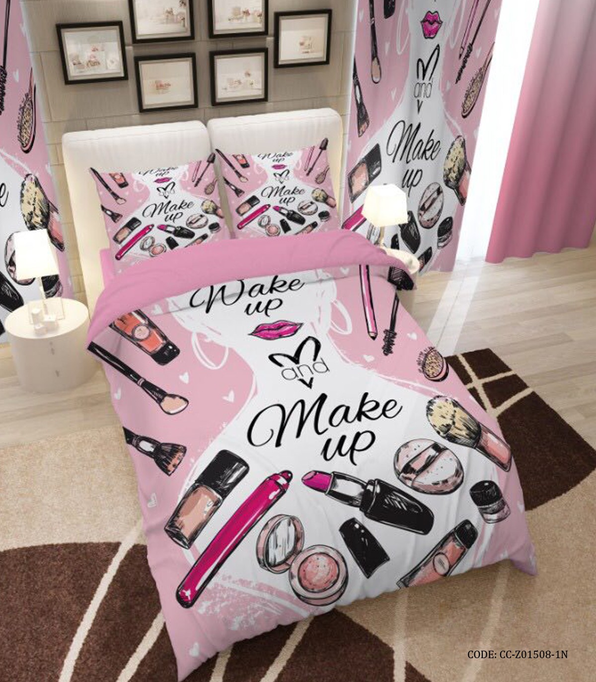ست روتختی دخترانه نوجوان طرح لوازم آرایشی مدل Make Up Time