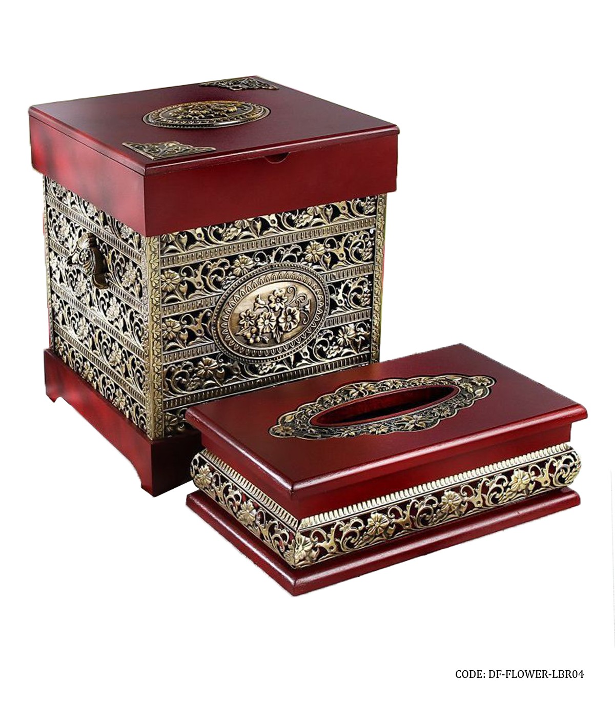 ست سطل و جادستمالی ام دی اف ماهاگونی طرح نهال
