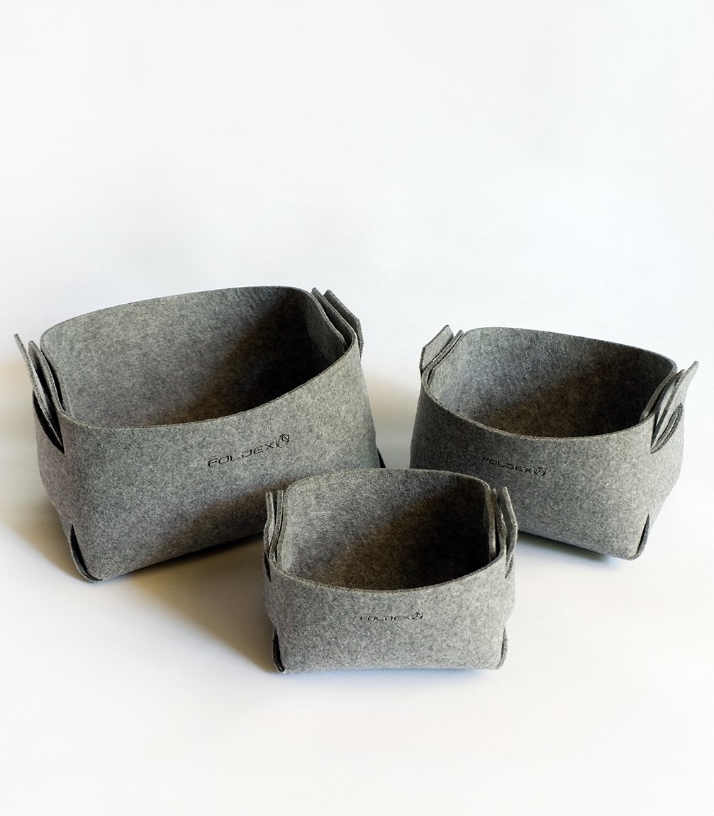 سبد های نمدی فولدکس، که با طرحی خلاقانه، بر مبنای تا کردن درست می شوند، در اشکال مربعی و مستطیلی در ابعاد گوناگون و در رنگ بندی های متنوع و جذاب ، مناسب هر نوع سلیقه، به شما مشتریان عزیز عرضه می شوند.