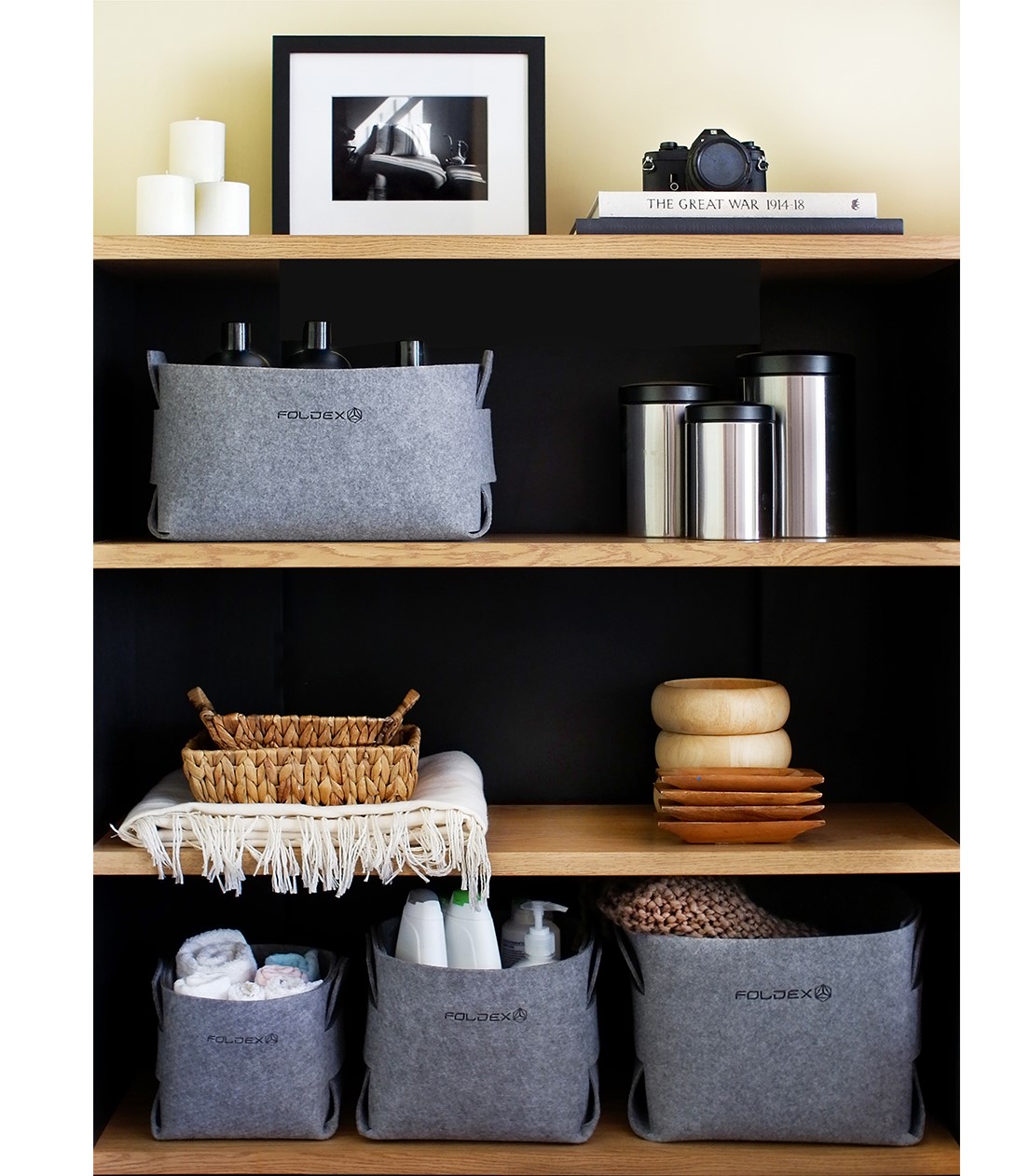 این سبد های نمدی، محکم و ایستا و در عین حال سبک هستند. در عین اینکه فضای زیادی را اشغال نمیکنند، اما انواع گوناگونی از وسایل را می توان درون آنها جا داد و چیدمان کرد.