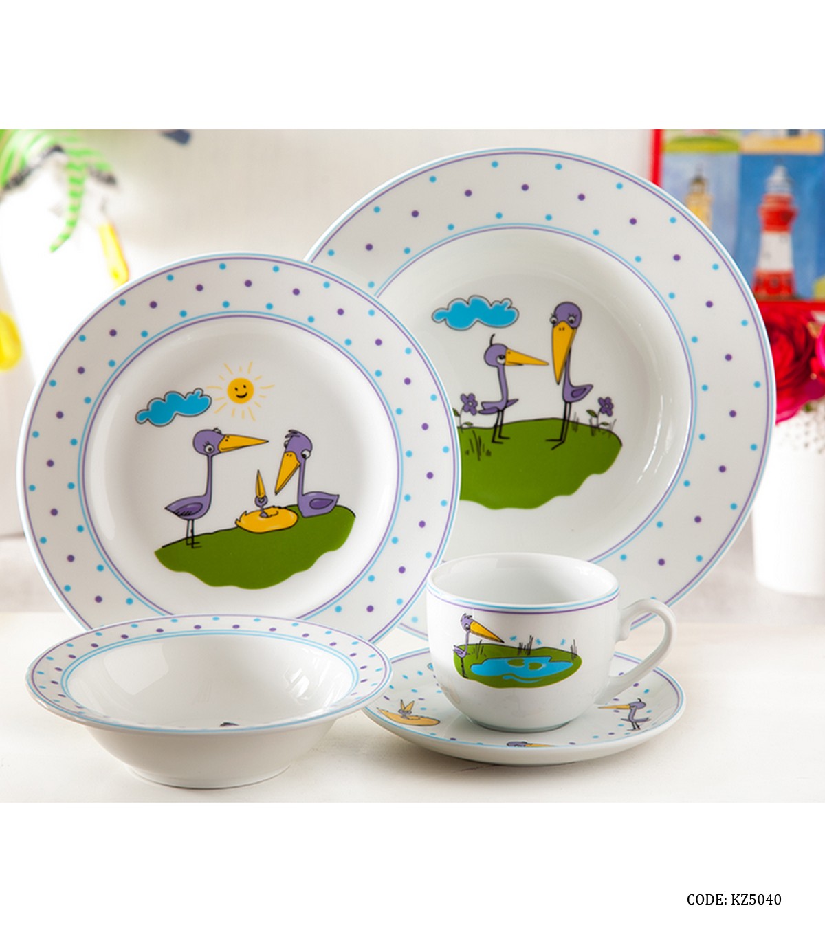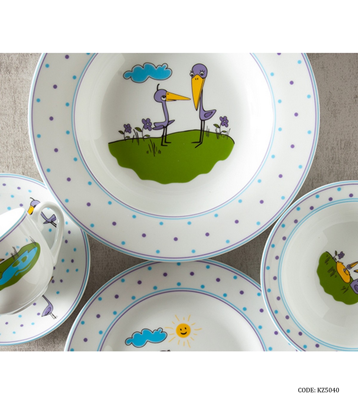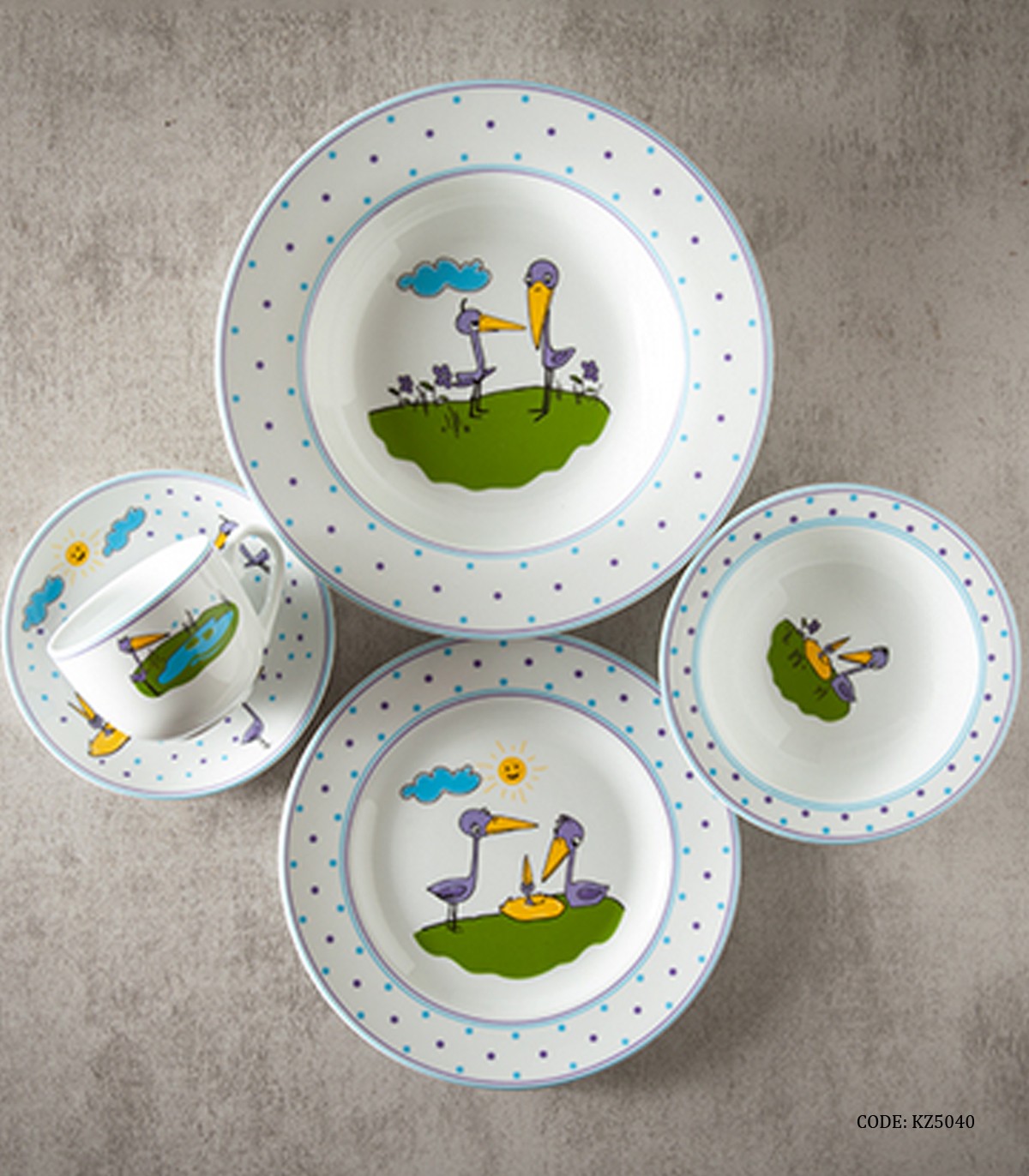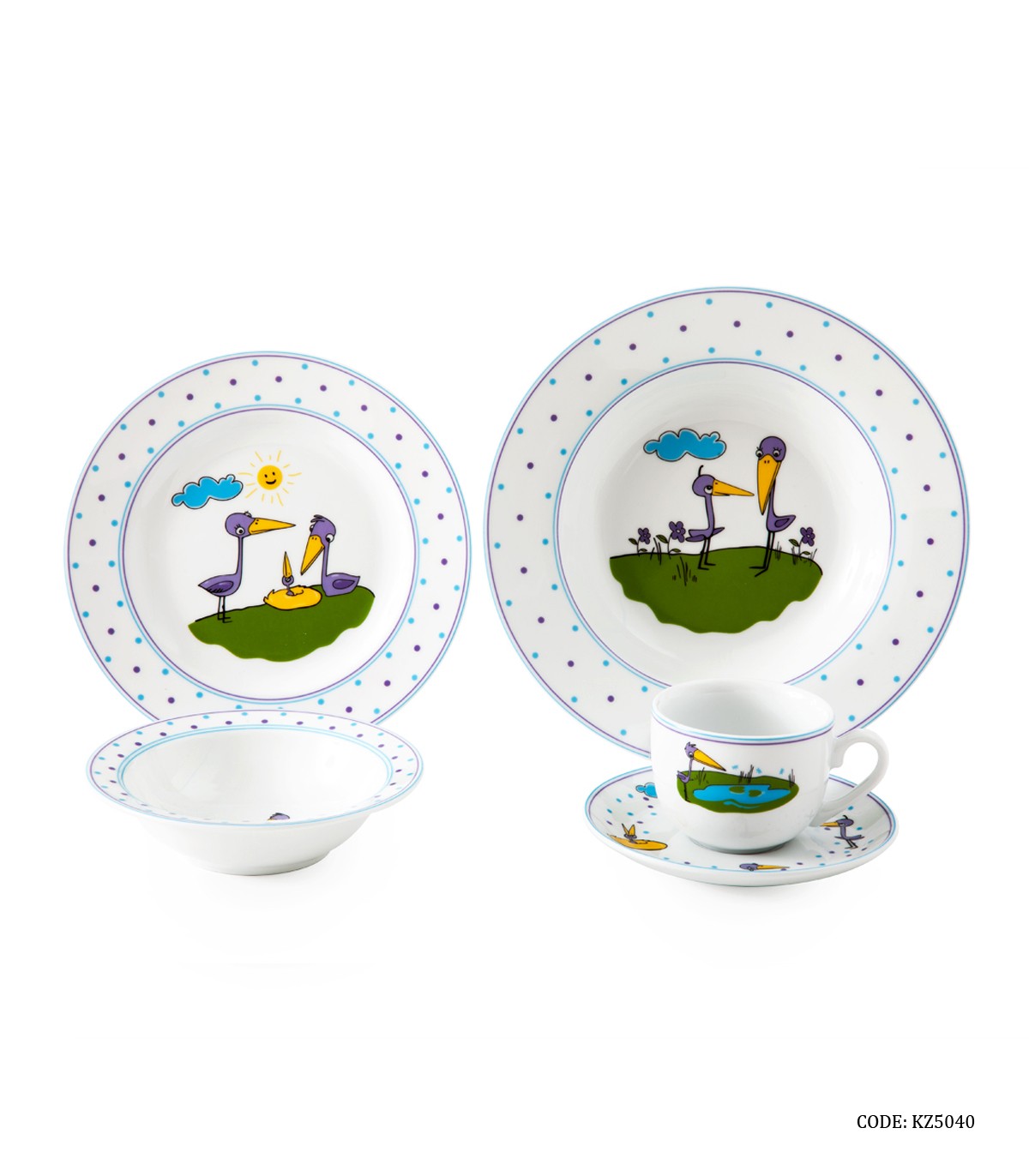ست ظروف غذا خوری چینی کودک زرین طرح پلیکان