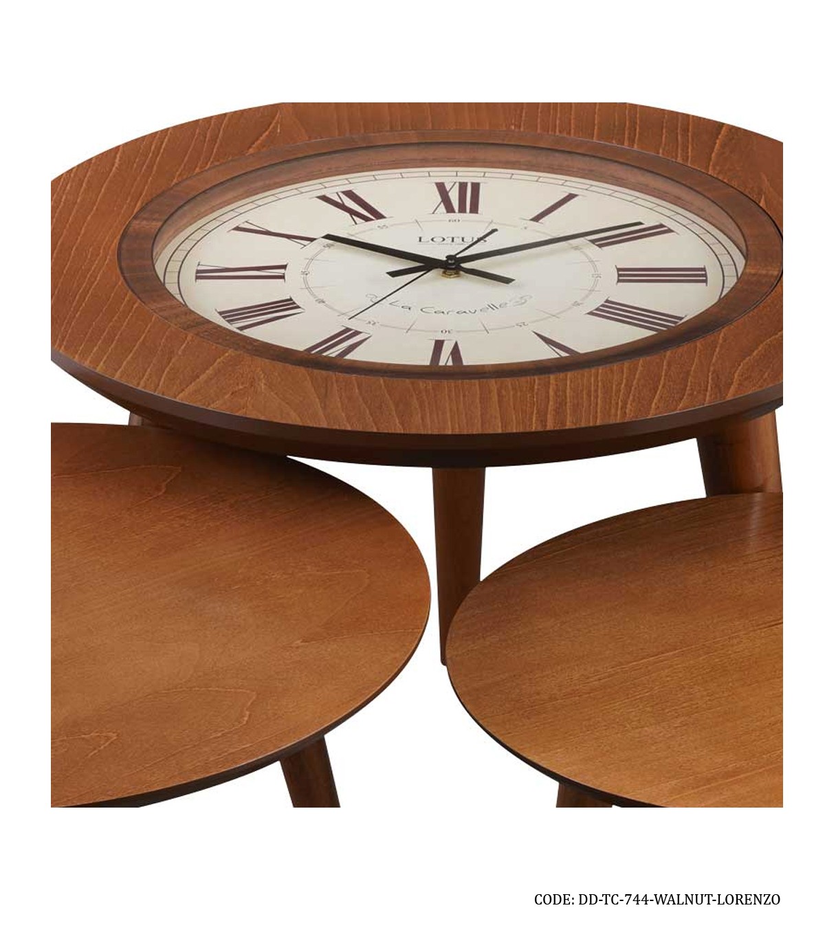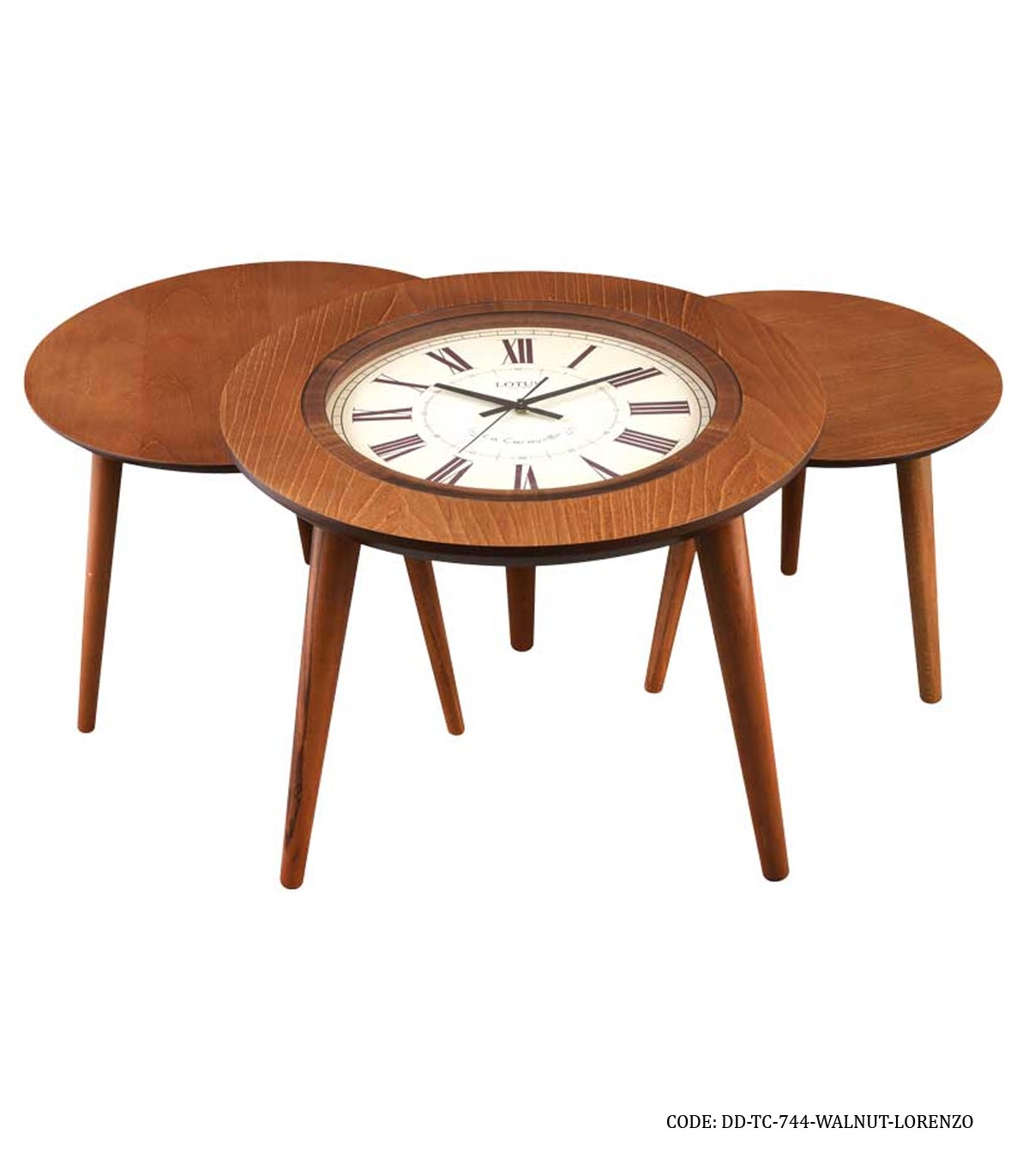 ست میز عسلی ساعت دار سه تکه LORENZO مدل ۷۴۴ گردویی