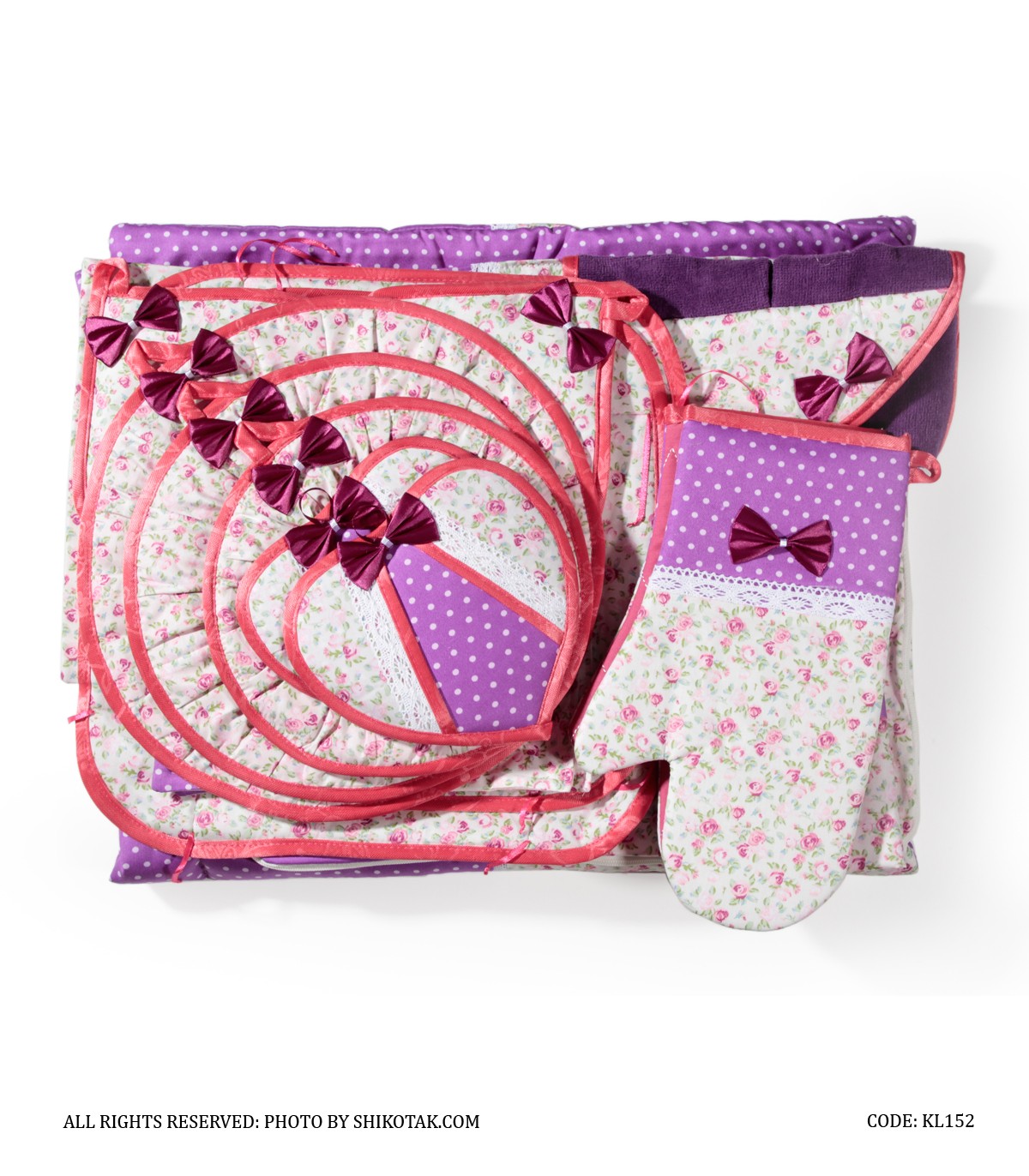 ست پارچه ای آشپزخانه عروس ۱۸ تکه گلدار بنفش