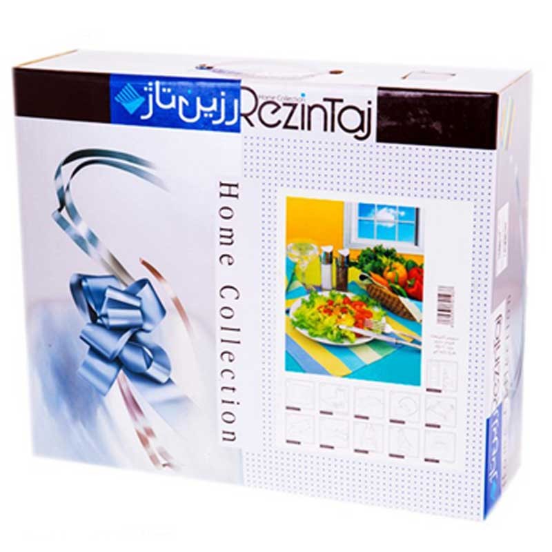 رزین تاز به عنوان یکی از شرکت های مطرح و پیشگام در عرصه تولید سرویس آشپزخانه و کالای خواب و حمام اقدام به تولید طرح های متنوع و با کیفیت سرویس پارچه ای آشپزخانه نموده است . ست آشپزخانه اسپرید آبی رزین تاژ شامل 20 تکه است . این ست پارچه ای آشپزخانه شامل 2 عدد دمکنی کشدار ، 2 عدد دستگیره 4 عدد دستمال سفره ، 1 عدد پیشبند ضد آب ، 1 عدد روقوری ، 1 عدد حوله آشپزخانه ، 2 عدد کیسه سبزی ، 2 عدد دستگیره یخچال ، 1 عدد سبد نان ، 2 عدد زیر بشقابی است .