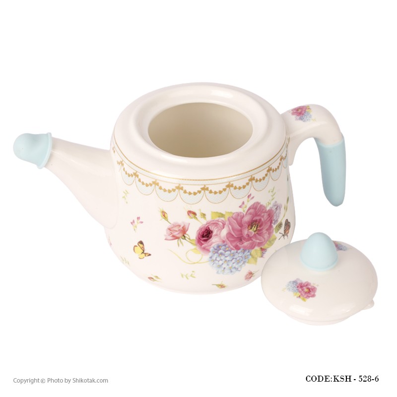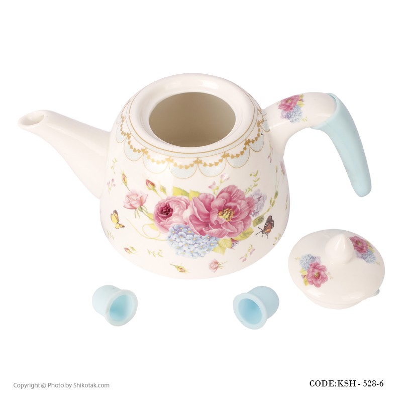 ست کتری قوری سرامیکی مدل گل سرخی آبی
