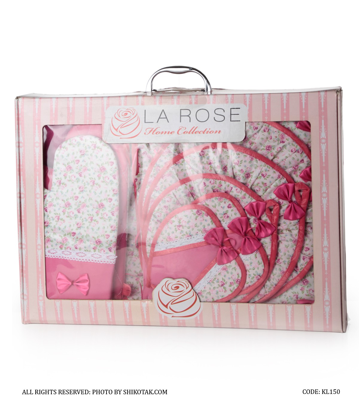 - محتویات بسته شامل: نمگیر ظرف-پیش بند-دمکنی کش داز-دستکش فر-دستگیره قلبی-دستگیره مربع-کیسه نان-جا نونی رومیزی-کیسه سبزی-جا سبزی رومیزی-حوله-دستگیره یخچال