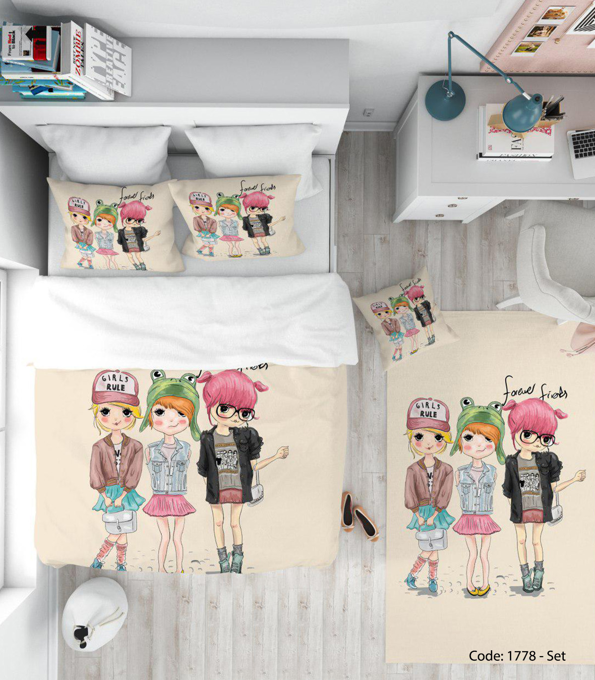 سرویس روتختی دخترانه مناسب اتاق نوجوان مدل FOREVER FRIENDS