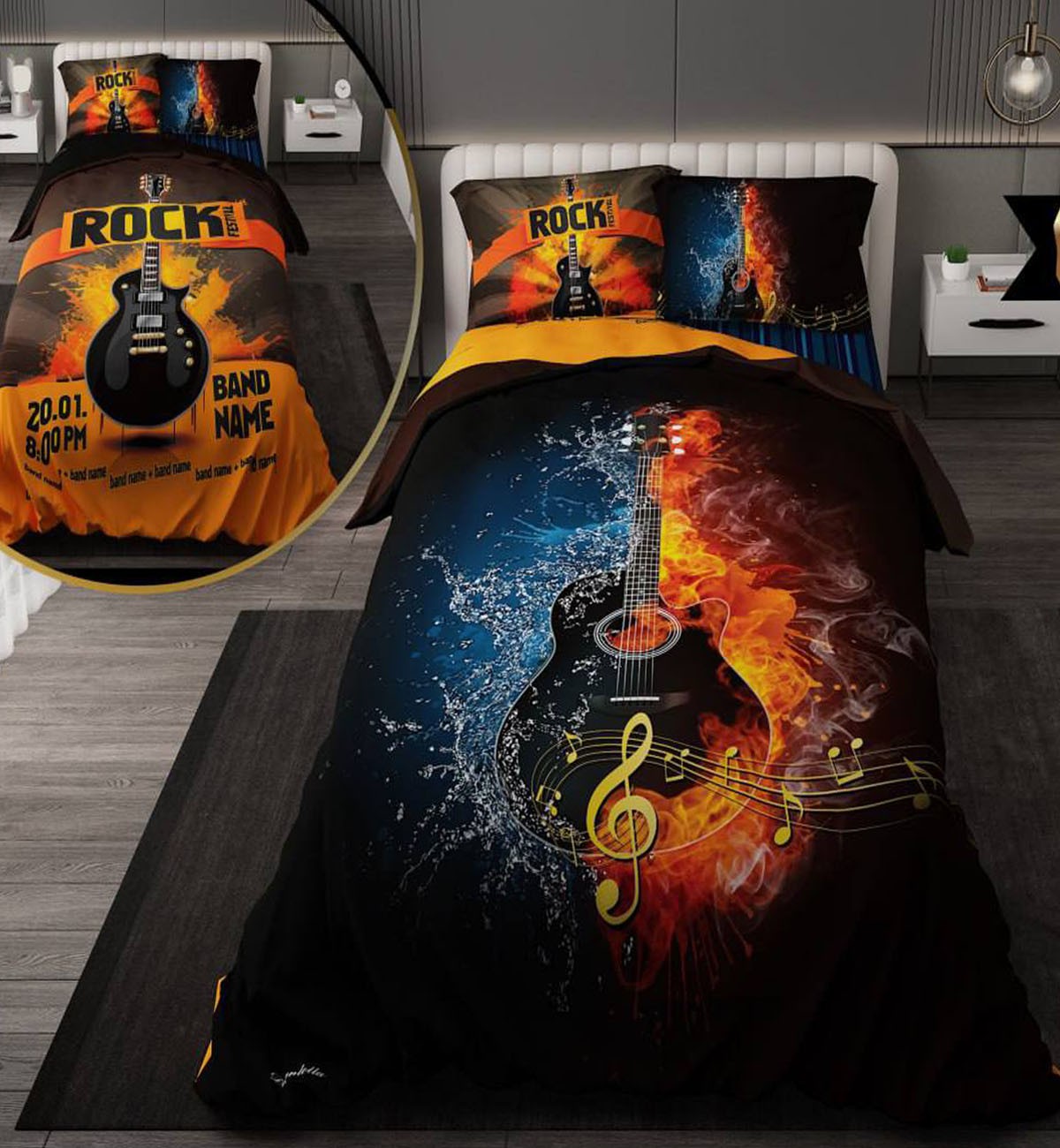 سرویس روتختی نوجوان پسرانه با لحاف دورویه طرحدار طرح گیتار