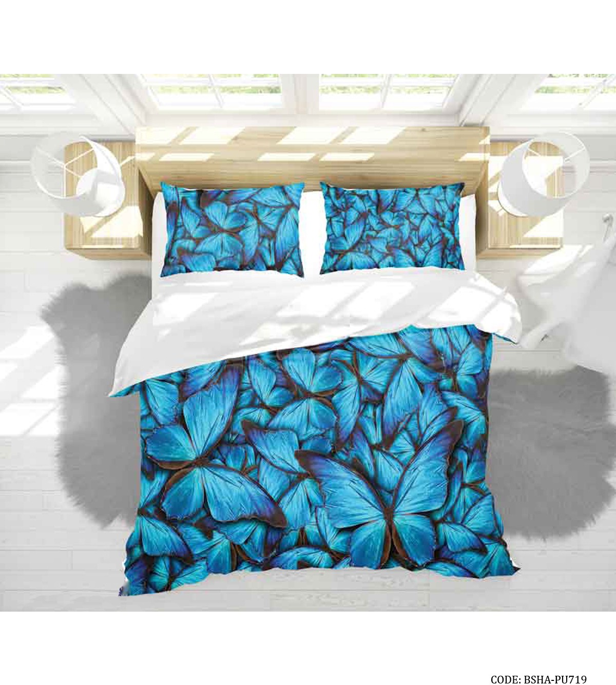 سرویس روتختی و ملحفه کشدار دو نفره مدل پروانه آبی